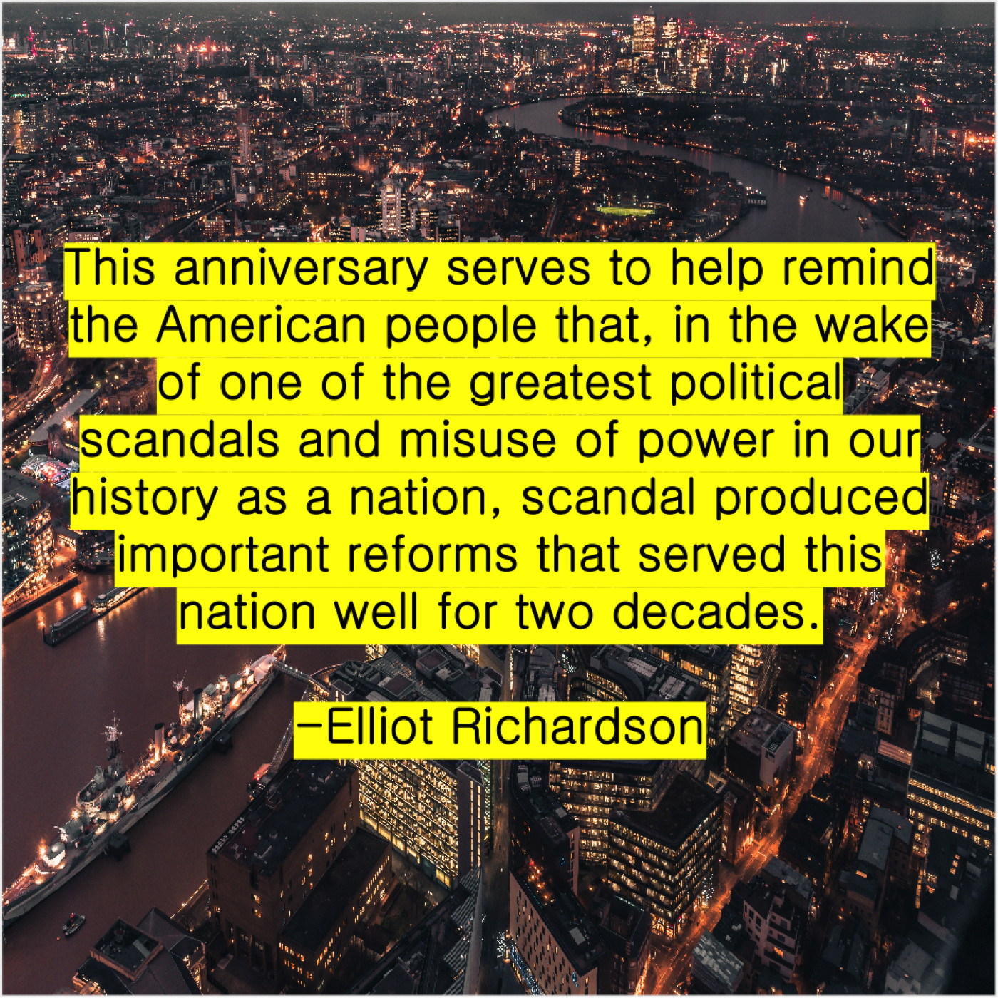 “This anniversary serves to help remind the American people that, in the wake of one of the greatest political scandals and misuse of power in our history as a nation, scandal produced important reforms that served this nation well for two decades.”