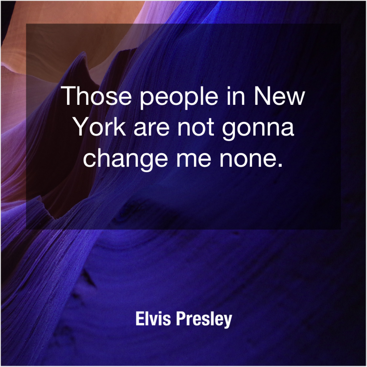 Elvis Presley Elvis Presley – Those people in New York… July 10, 2019 admin “Those people in New York are not gonna change me none.”-Elvis Presley