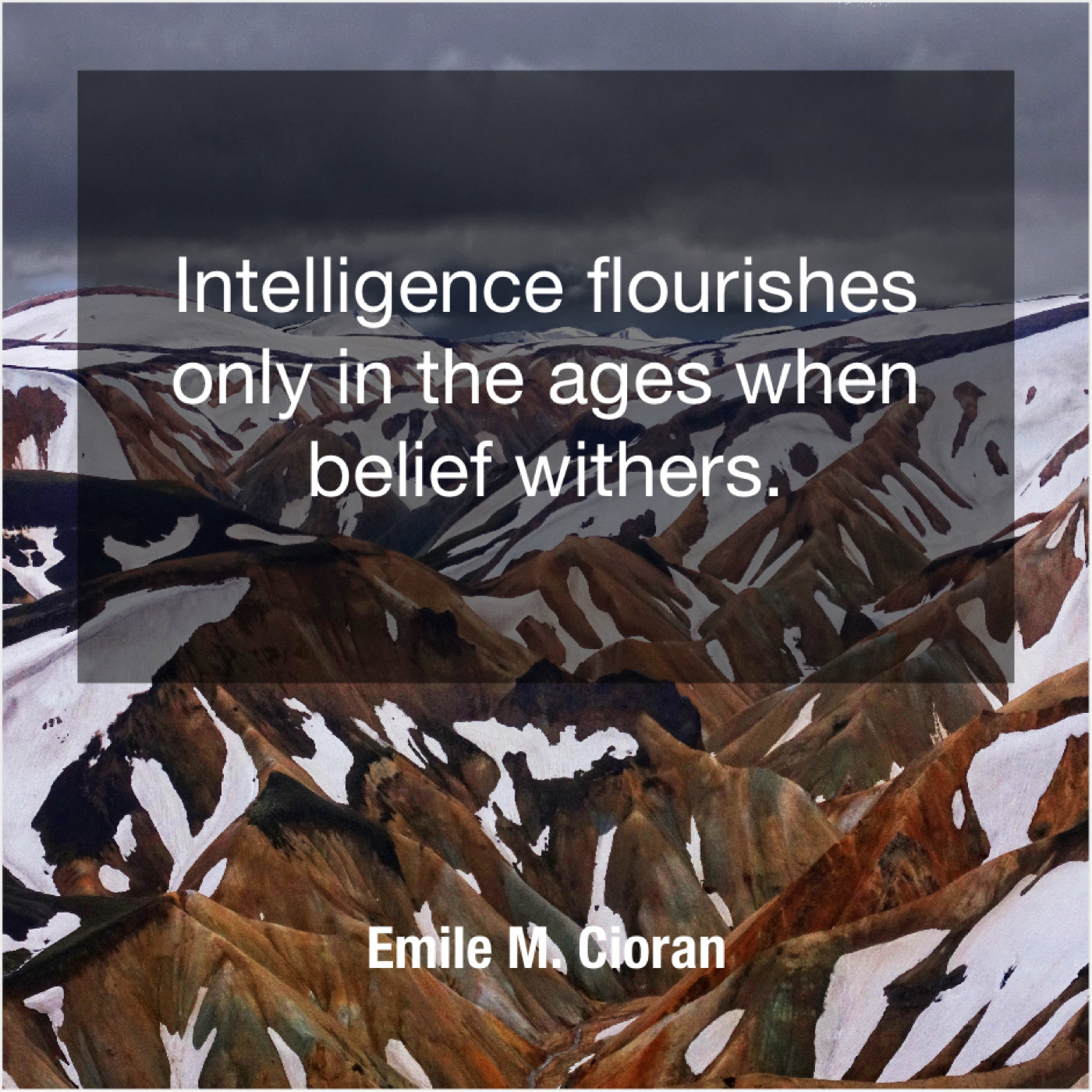 Emile M. Cioran Emile M. Cioran – Intelligence flourishes only in the… June 26, 2019 admin “Intelligence flourishes only in the ages when belief withers.”-Emile M. Cioran