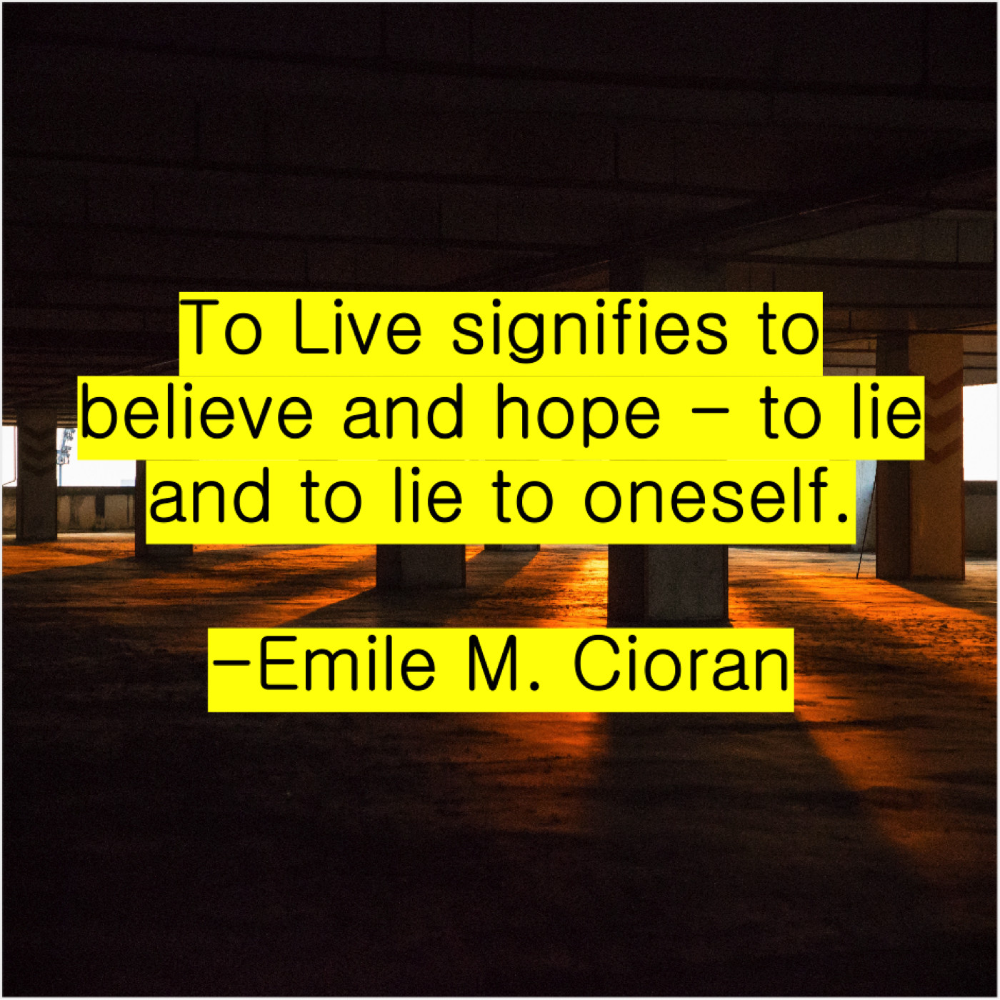Emile M. Cioran Emile M. Cioran – To Live signifies to believe… June 23, 2019 admin “To Live signifies to believe and hope – to lie and to lie to oneself.”-Emile M. Cioran