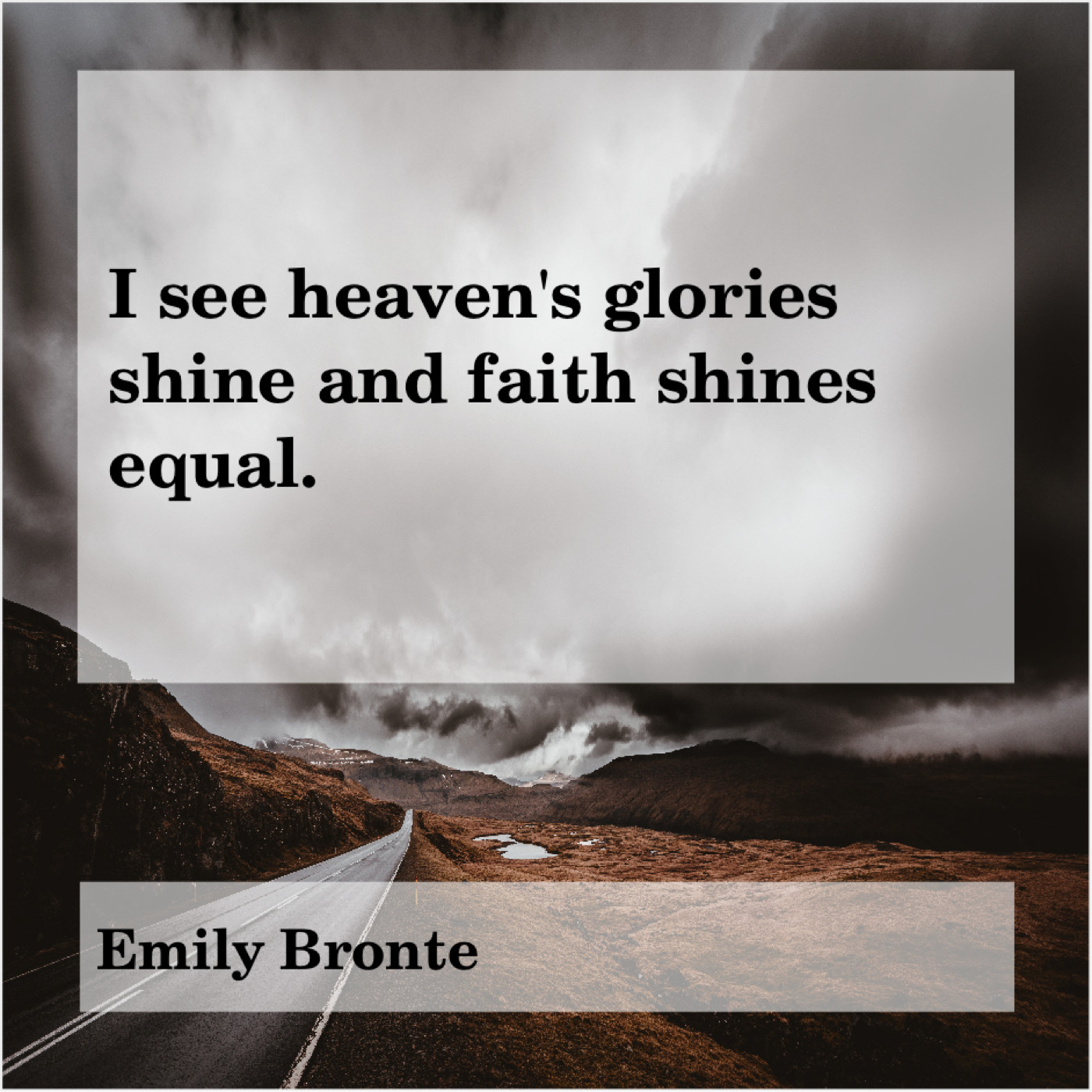 Emily Bronte Emily Bronte – I see heaven’s glories shine… May 12, 2019 admin “I see heaven’s glories shine and faith shines equal.”-Emily Bronte