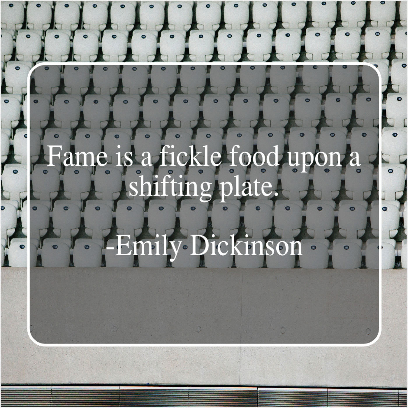 Emily Dickinson Emily Dickinson – Fame is a fickle food… April 4, 2019 admin “Fame is a fickle food upon a shifting plate.”-Emily Dickinson