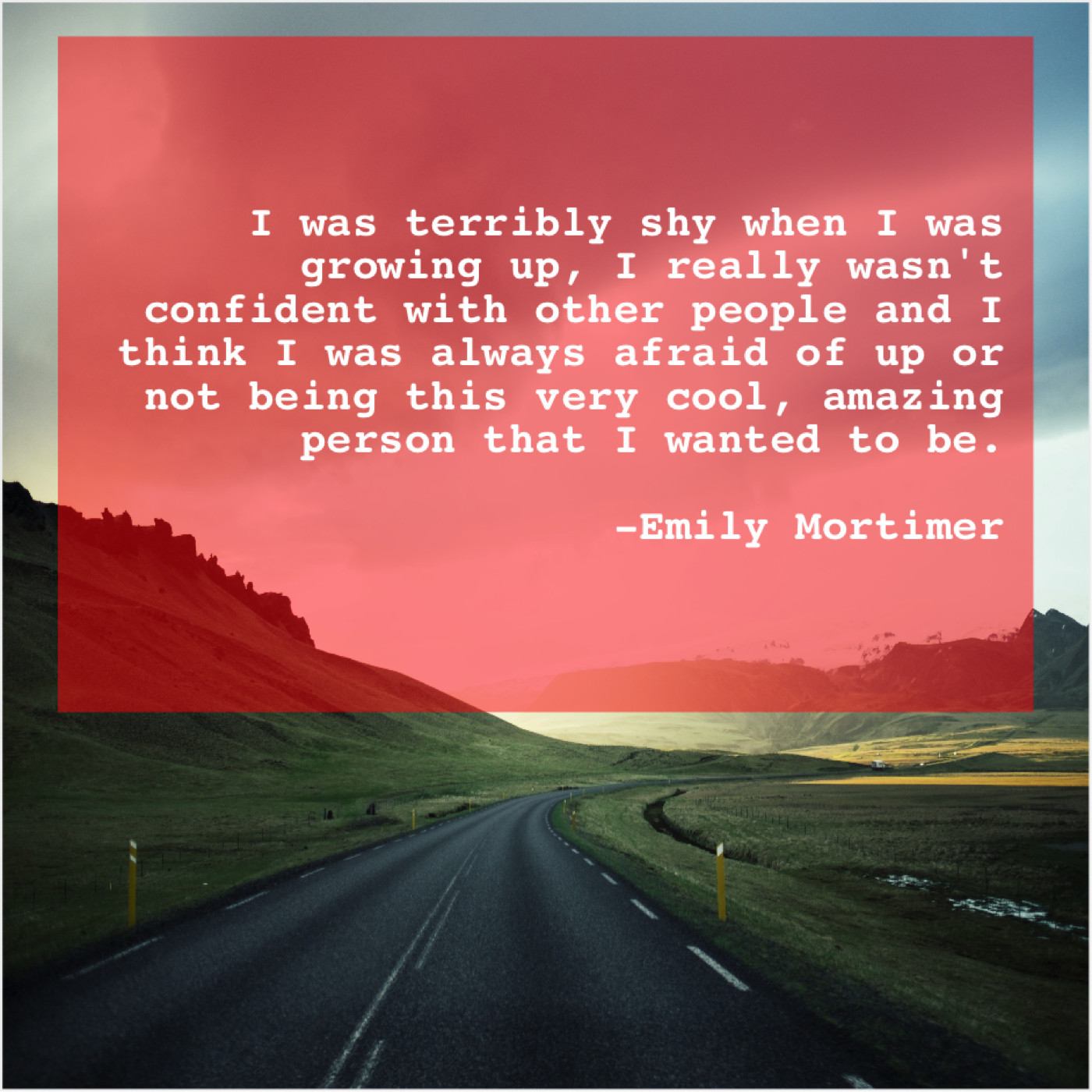 Emily Mortimer Emily Mortimer – I was terribly shy when… March 6, 2019 admin “I was terribly shy when I was growing up, I really wasn’t confident with other people and I think I was always afraid of up or not being this very cool, amazing person that I wanted to be.”-Emily Mortimer