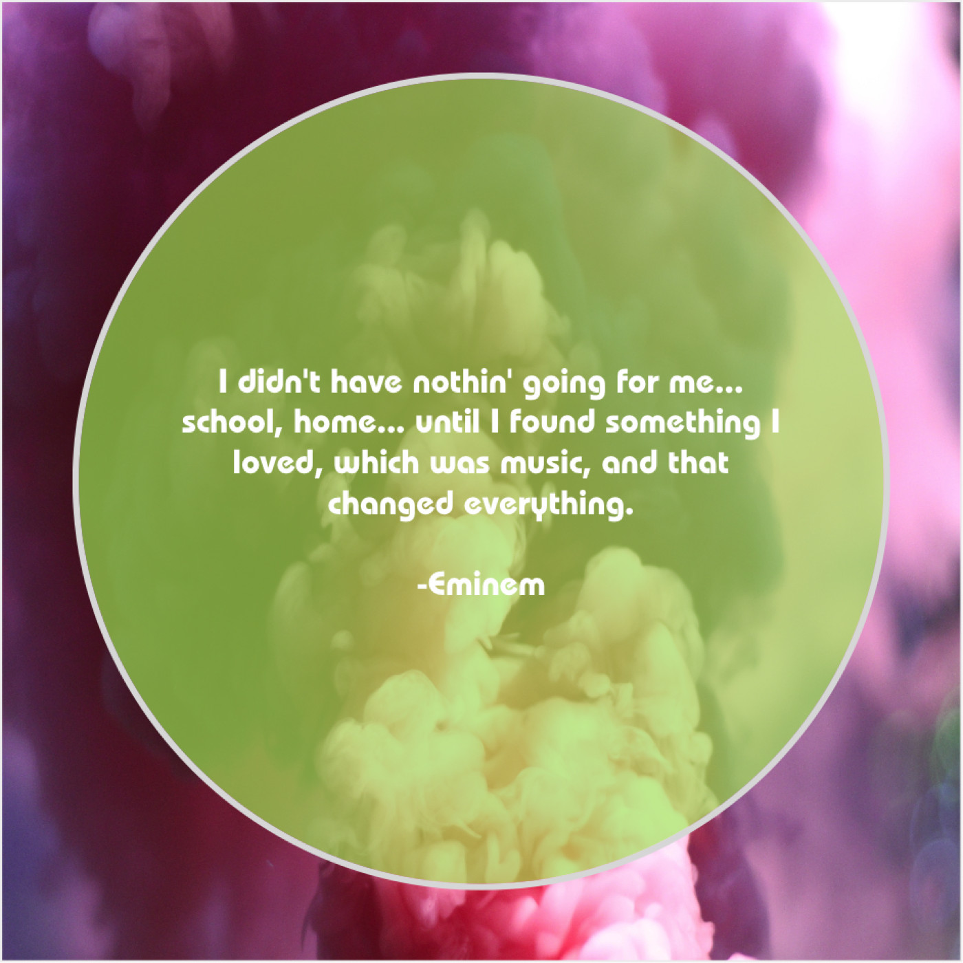 Eminem Eminem – I didn’t have nothin’ going… June 23, 2019 admin “I didn’t have nothin’ going for me… school, home… until I found something I loved, which was music, and that changed everything.”-Eminem
