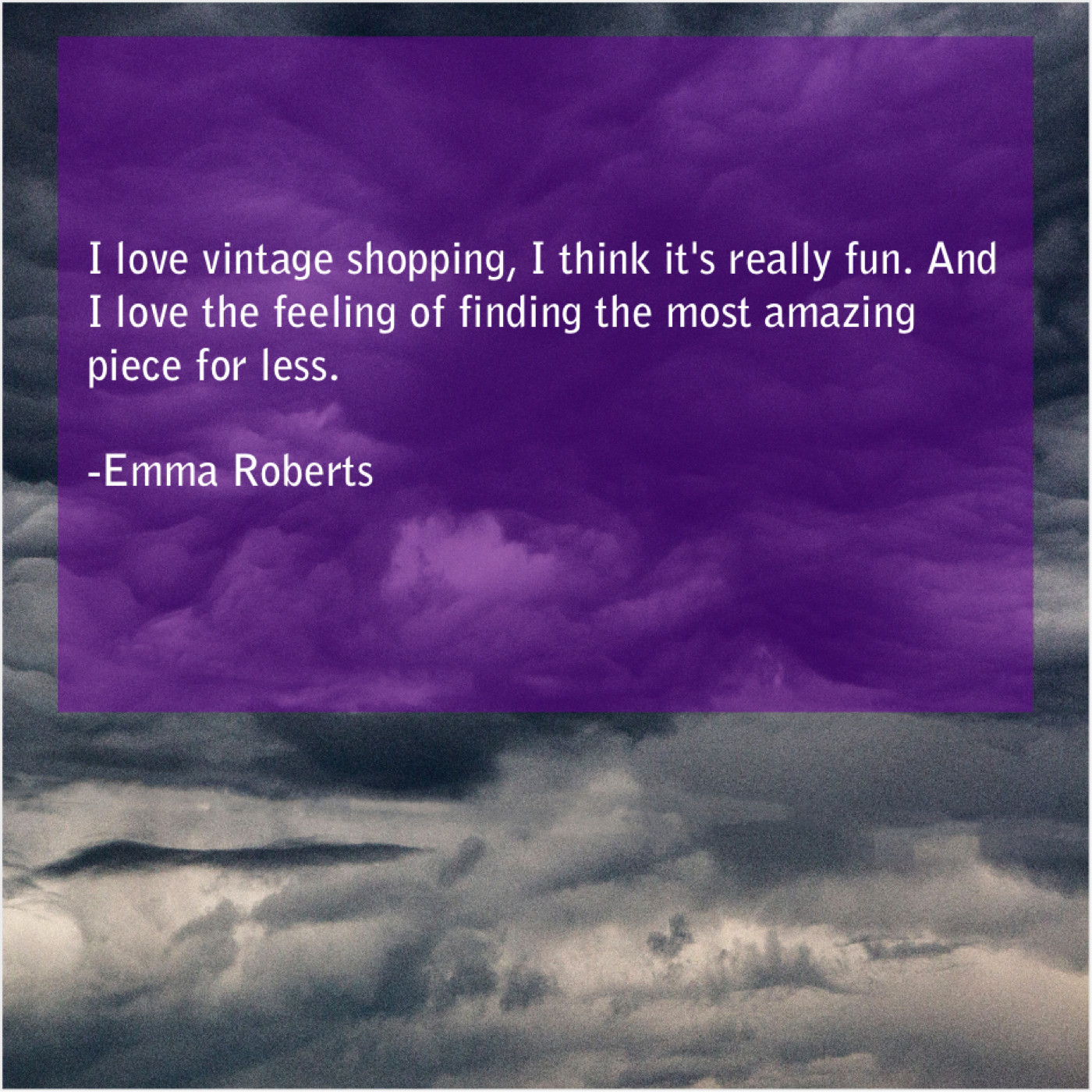 Emma Roberts Emma Roberts – I love vintage shopping, I… October 6, 2019 admin “I love vintage shopping, I think it’s really fun. And I love the feeling of finding the most amazing piece for less.”-Emma Roberts