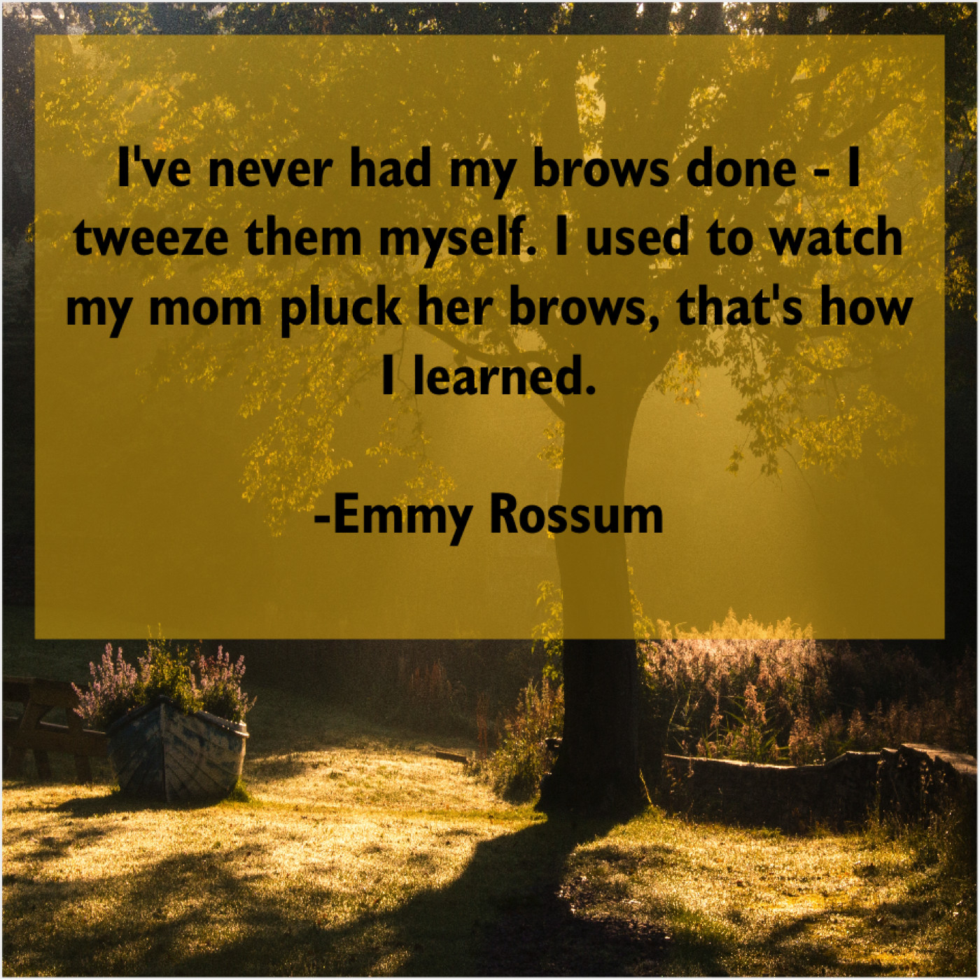 Emmy Rossum Emmy Rossum – I’ve never had my brows… June 3, 2019 admin “I’ve never had my brows done – I tweeze them myself. I used to watch my mom pluck her brows, that’s how I learned.”-Emmy Rossum