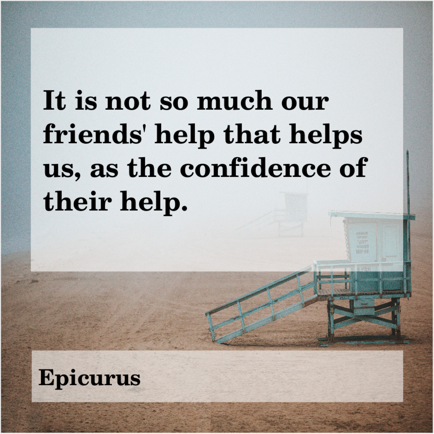 Epicurus Epicurus – It is not so much… September 7, 2019 admin “It is not so much our friends’ help that helps us, as the confidence of their help.”-Epicurus