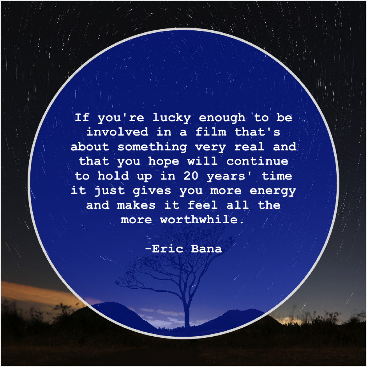 Eric Bana Eric Bana – If you’re lucky enough to… July 6, 2019 admin “If you’re lucky enough to be involved in a film that’s about something very real and that you hope will continue to hold up in 20 years’ time it just gives you more energy and makes it feel all the more worthwhile.”-Eric Bana