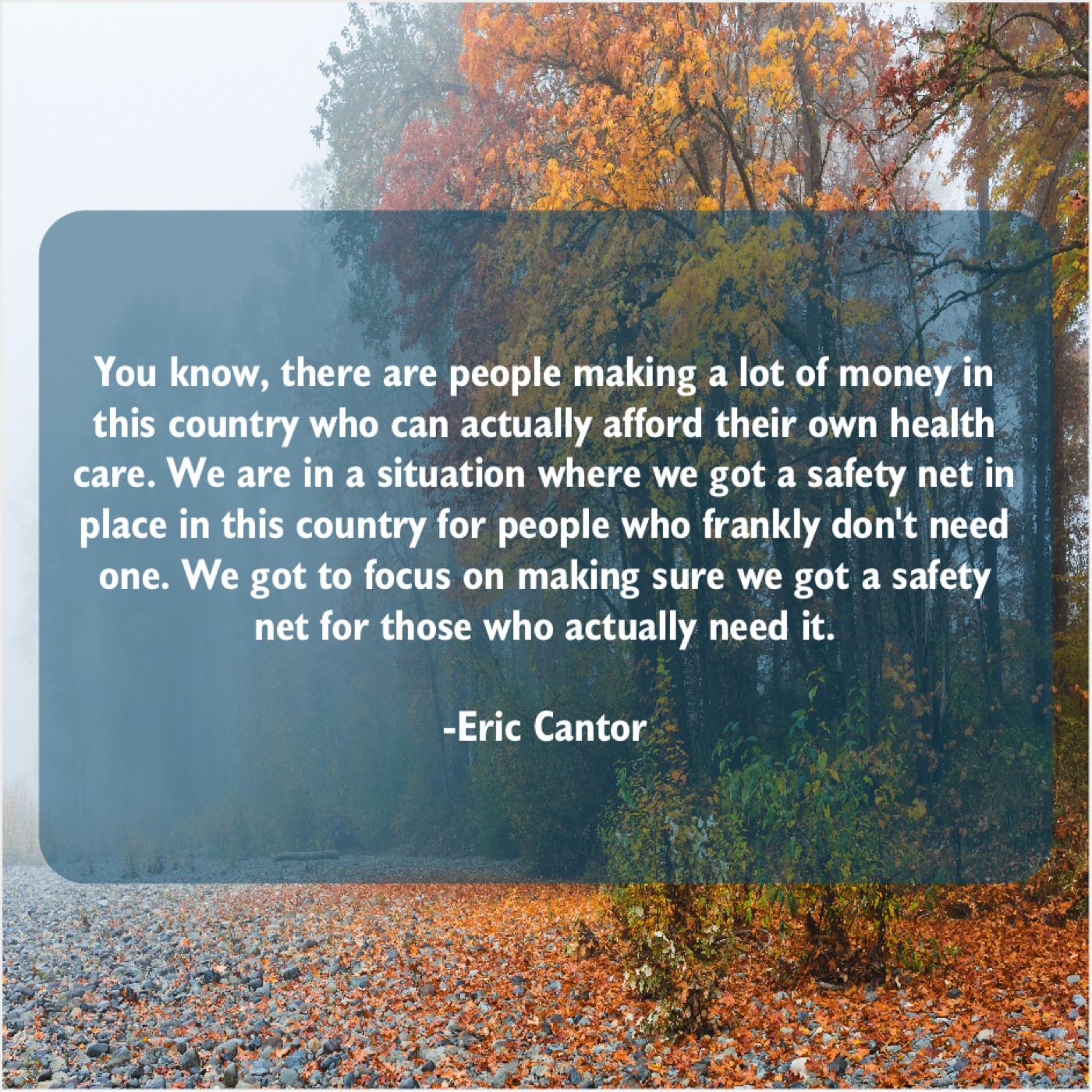 “You know, there are people making a lot of money in this country who can actually afford their own health care. We are in a situation where we got a safety net in place in this country for people who frankly don’t need one. We got to focus on making sure we got a safety net for those who actually need it.”