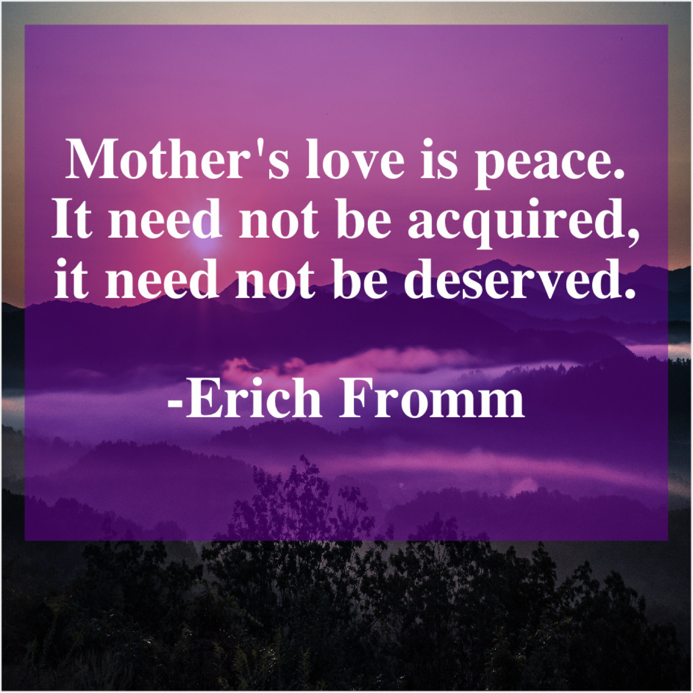Erich Fromm Erich Fromm – Mother’s love is peace. It… June 15, 2019 admin “Mother’s love is peace. It need not be acquired, it need not be deserved.”-Erich Fromm