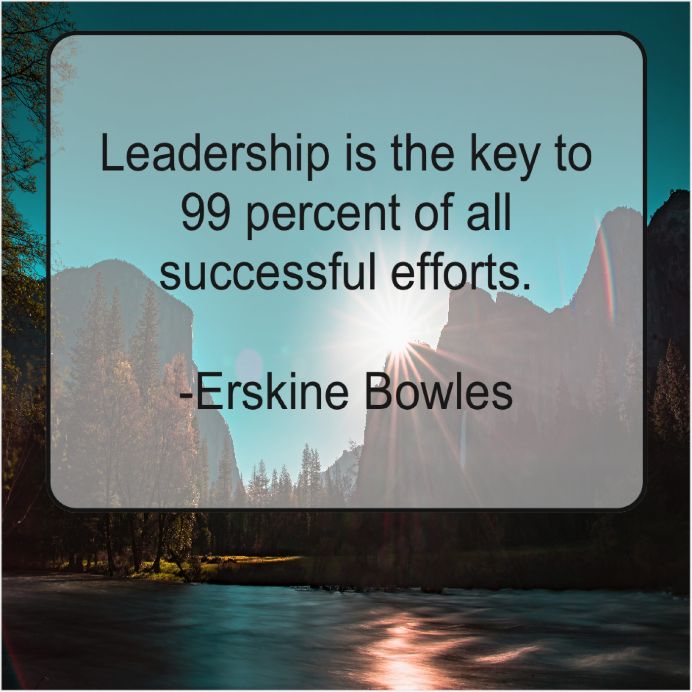 Erskine Bowles Erskine Bowles – Leadership is the key to… November 13, 2018 admin “Leadership is the key to 99 percent of all successful efforts.”-Erskine Bowles