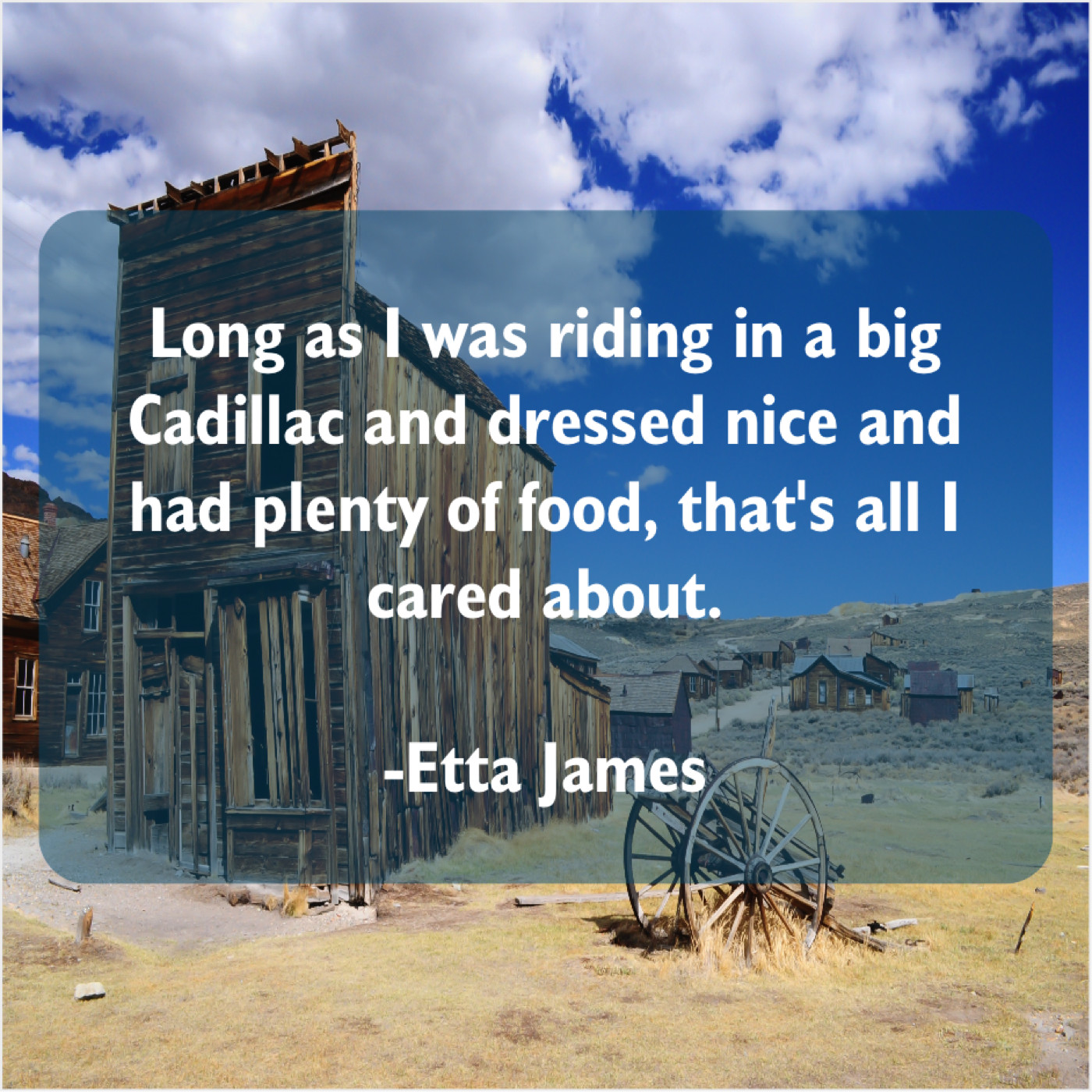 Etta James Etta James – Long as I was riding… May 25, 2019 admin “Long as I was riding in a big Cadillac and dressed nice and had plenty of food, that’s all I cared about.”-Etta James