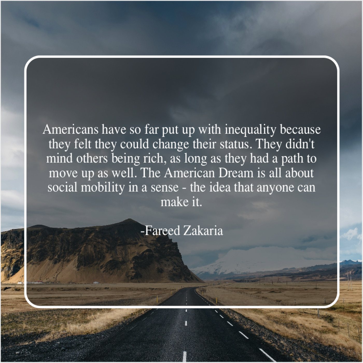 “Americans have so far put up with inequality because they felt they could change their status. They didn’t mind others being rich, as long as they had a path to move up as well. The American Dream is all about social mobility in a sense – the idea that anyone can make it.”