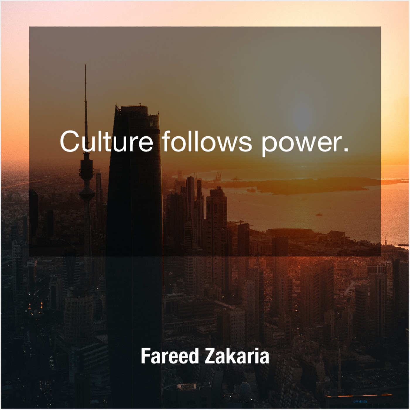 Fareed Zakaria Fareed Zakaria – Culture follows power… February 16, 2019 admin “Culture follows power.”-Fareed Zakaria