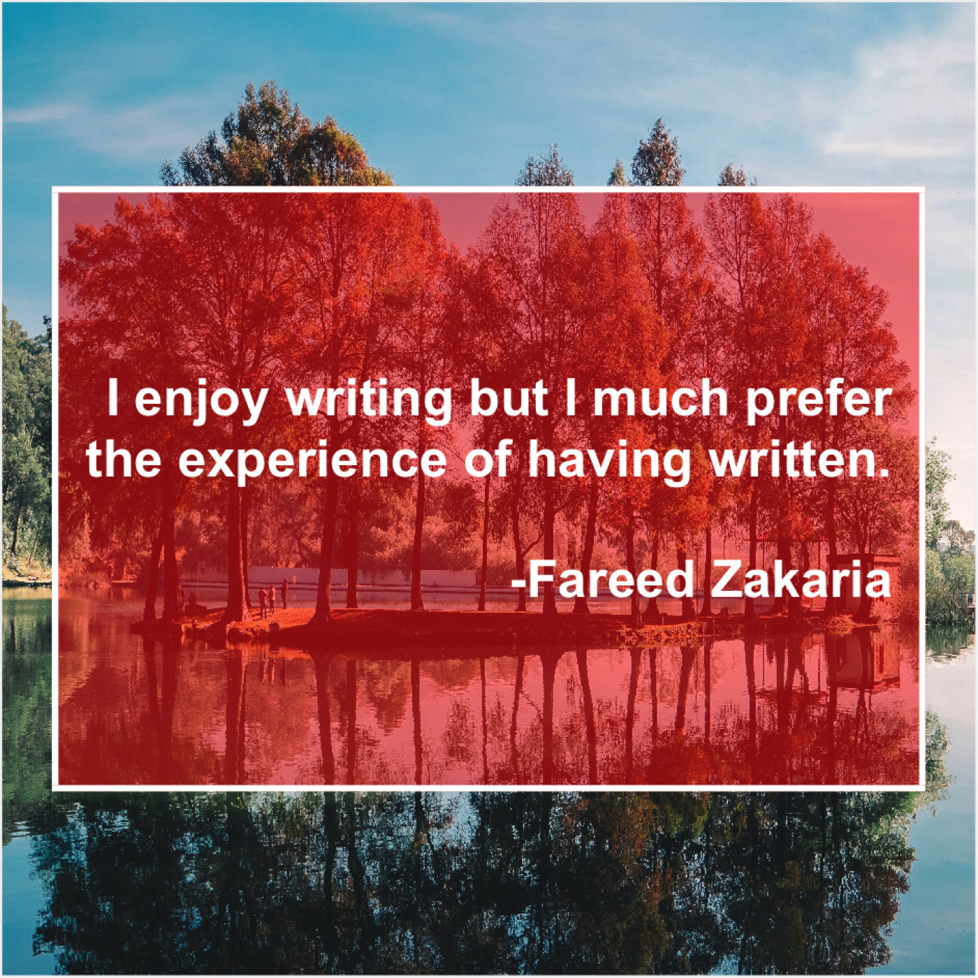 Fareed Zakaria Fareed Zakaria – I enjoy writing but I… February 2, 2019 admin “I enjoy writing but I much prefer the experience of having written.”-Fareed Zakaria