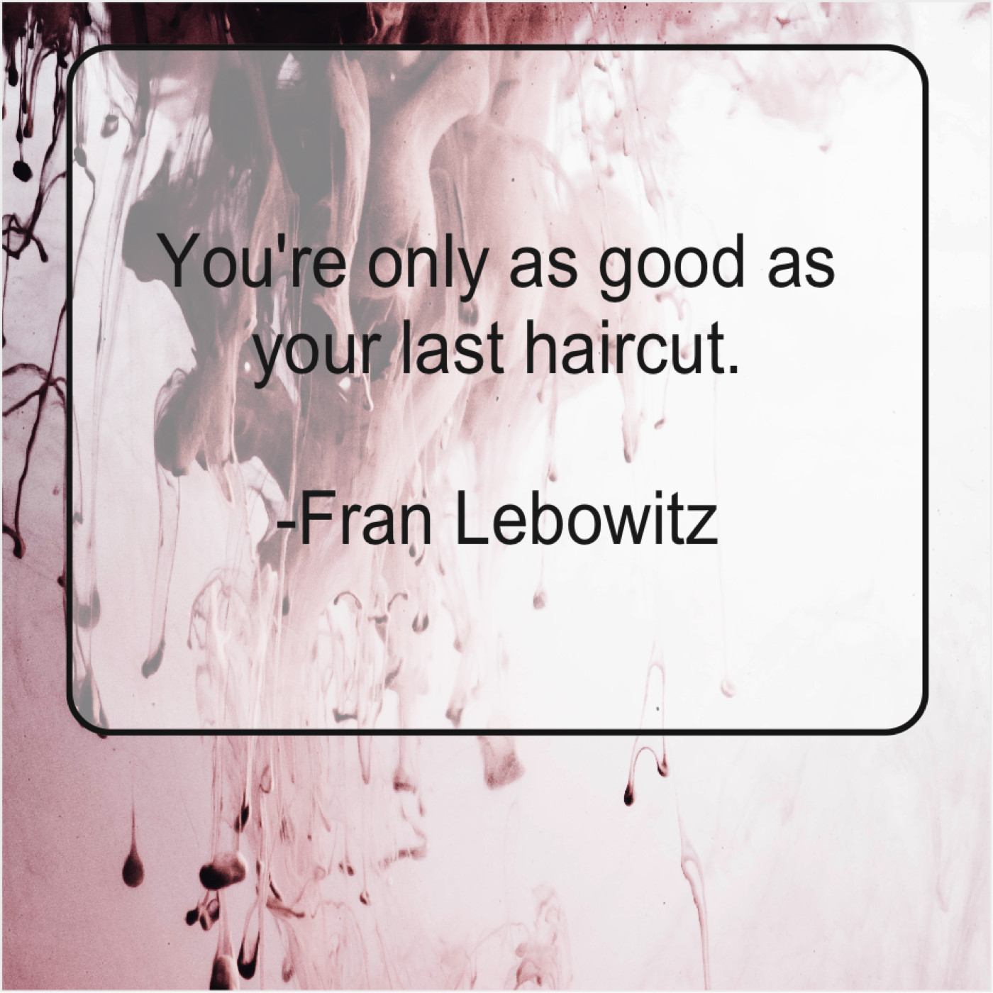 Fran Lebowitz Fran Lebowitz – You’re only as good as… August 16, 2019 admin “You’re only as good as your last haircut.”-Fran Lebowitz