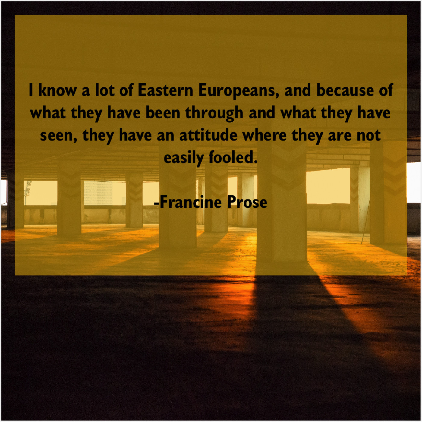 Francine Prose Francine Prose – I know a lot of… December 8, 2018 admin “I know a lot of Eastern Europeans, and because of what they have been through and what they have seen, they have an attitude where they are not easily fooled.”-Francine Prose