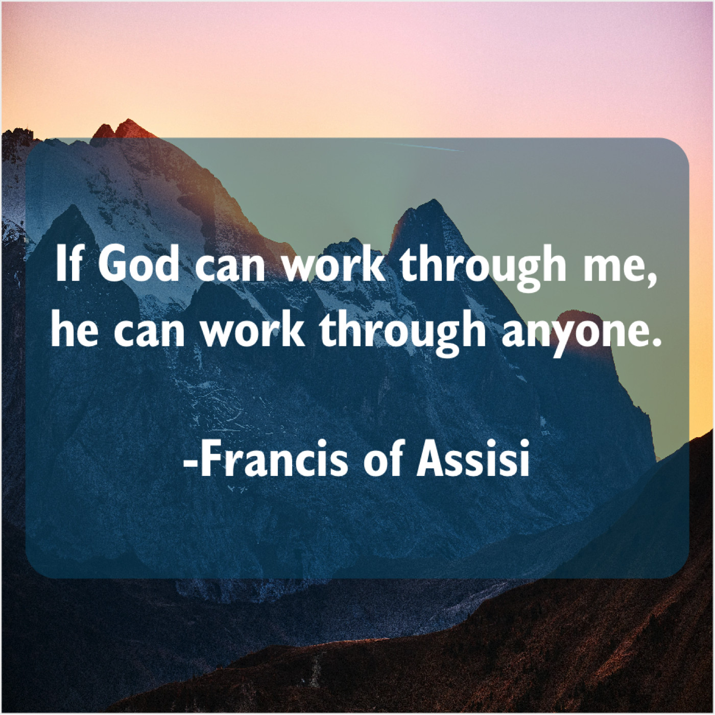 Francis of Assisi Francis of Assisi – If God can work through… January 7, 2019 admin “If God can work through me, he can work through anyone.”-Francis of Assisi