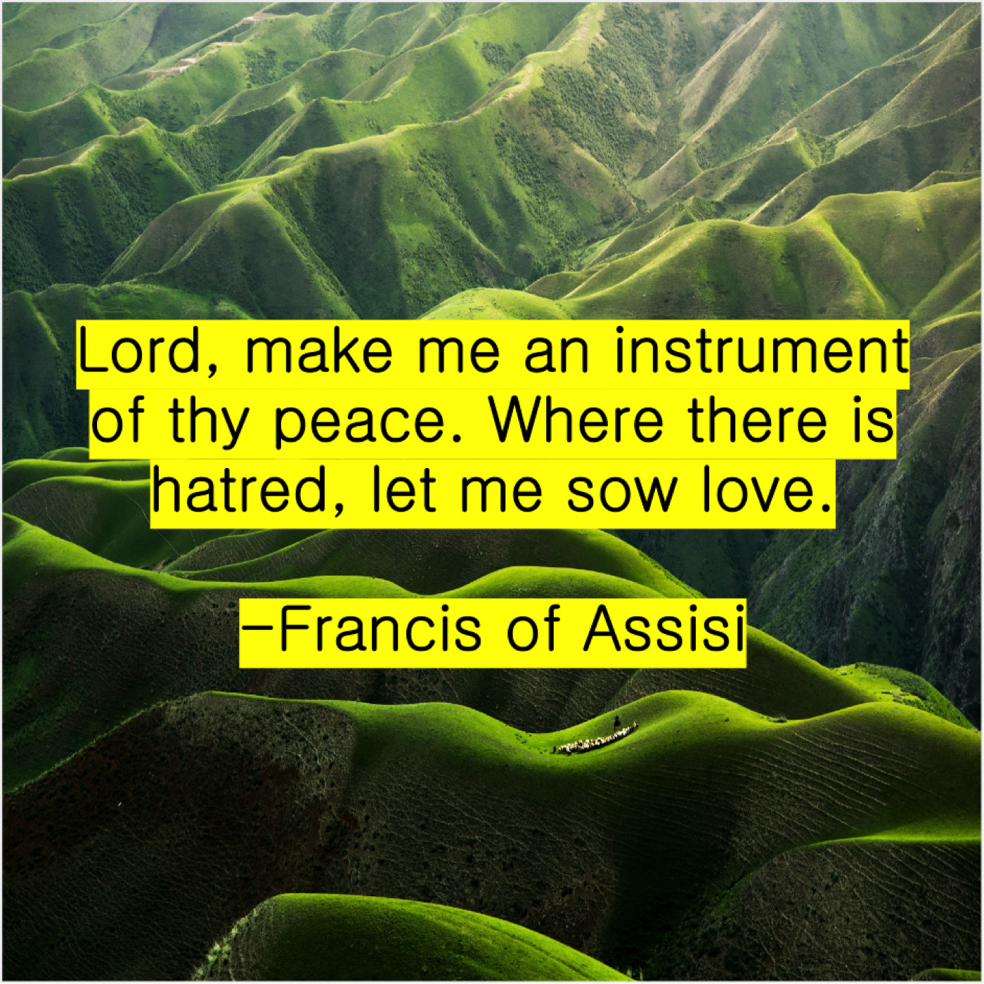Francis of Assisi Francis of Assisi – Lord, make me an instrument… December 24, 2018 admin “Lord, make me an instrument of thy peace. Where there is hatred, let me sow love.”-Francis of Assisi