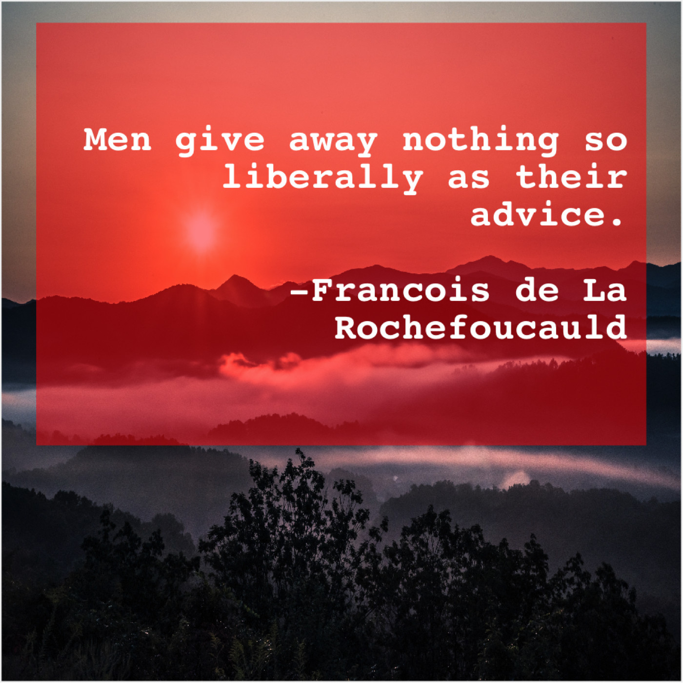 Francois de La Rochefoucauld Francois de La Rochefoucauld – Men give away nothing so… December 13, 2018 admin “Men give away nothing so liberally as their advice.”-Francois de La Rochefoucauld
