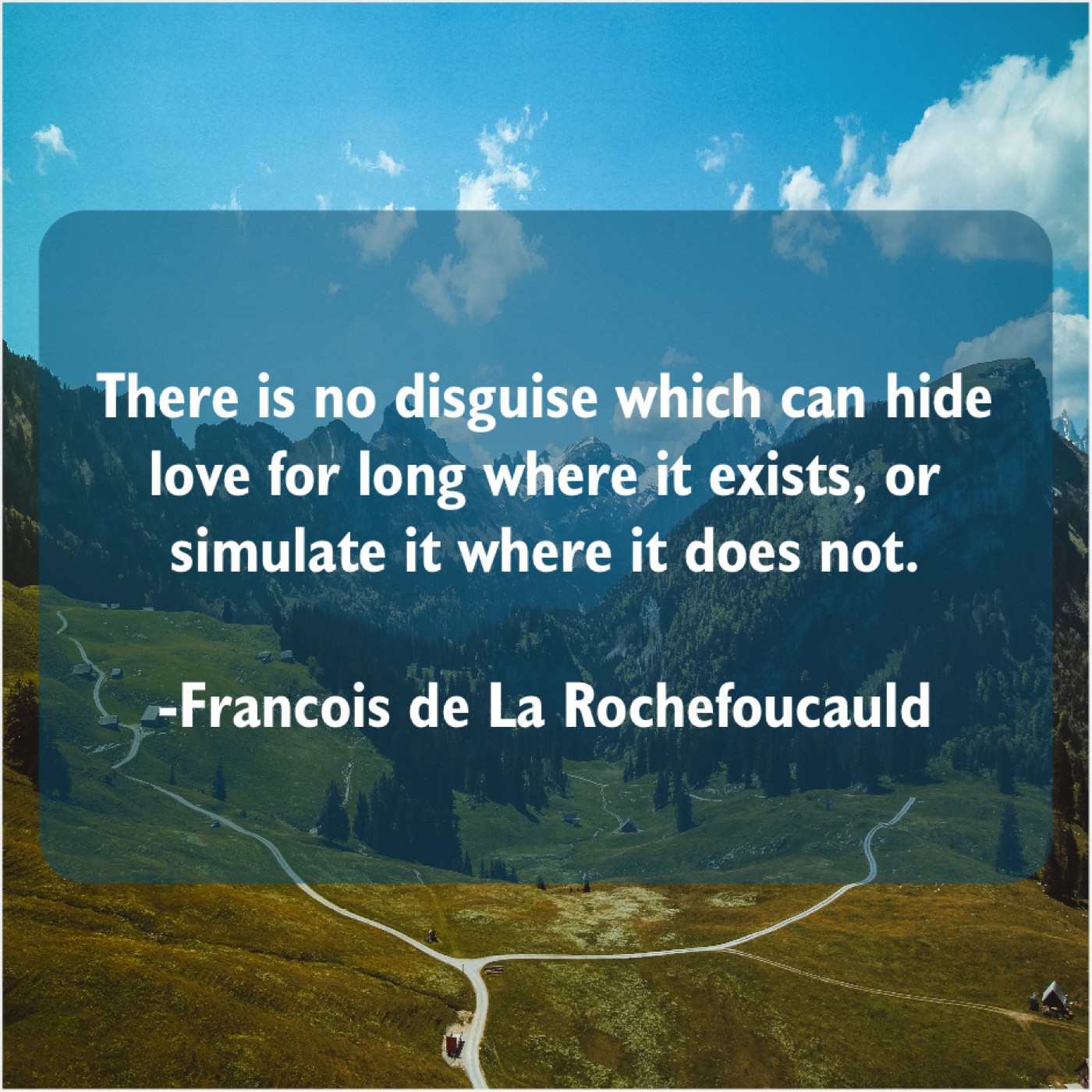 Francois de La Rochefoucauld Francois de La Rochefoucauld – There is no disguise which… September 29, 2019 admin “There is no disguise which can hide love for long where it exists, or simulate it where it does not.”-Francois de La Rochefoucauld
