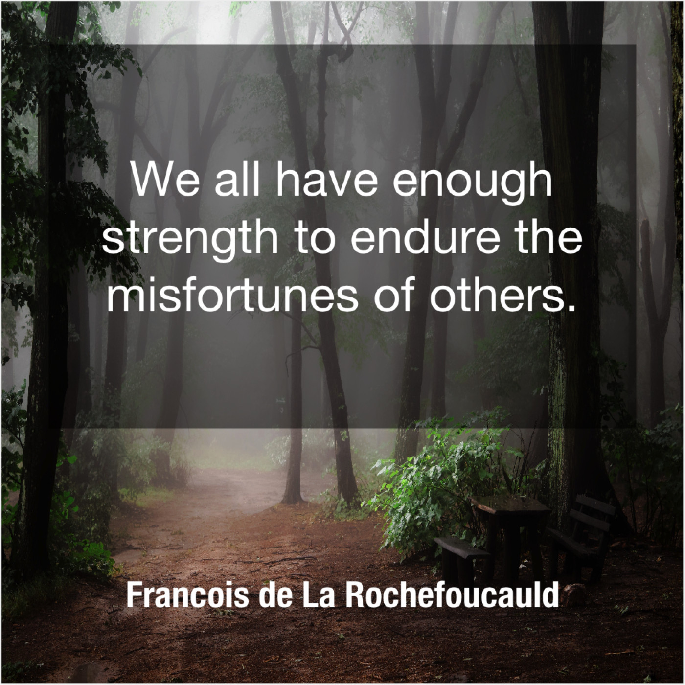 Francois de La Rochefoucauld Francois de La Rochefoucauld – We all have enough strength… February 19, 2019 admin “We all have enough strength to endure the misfortunes of others.”-Francois de La Rochefoucauld