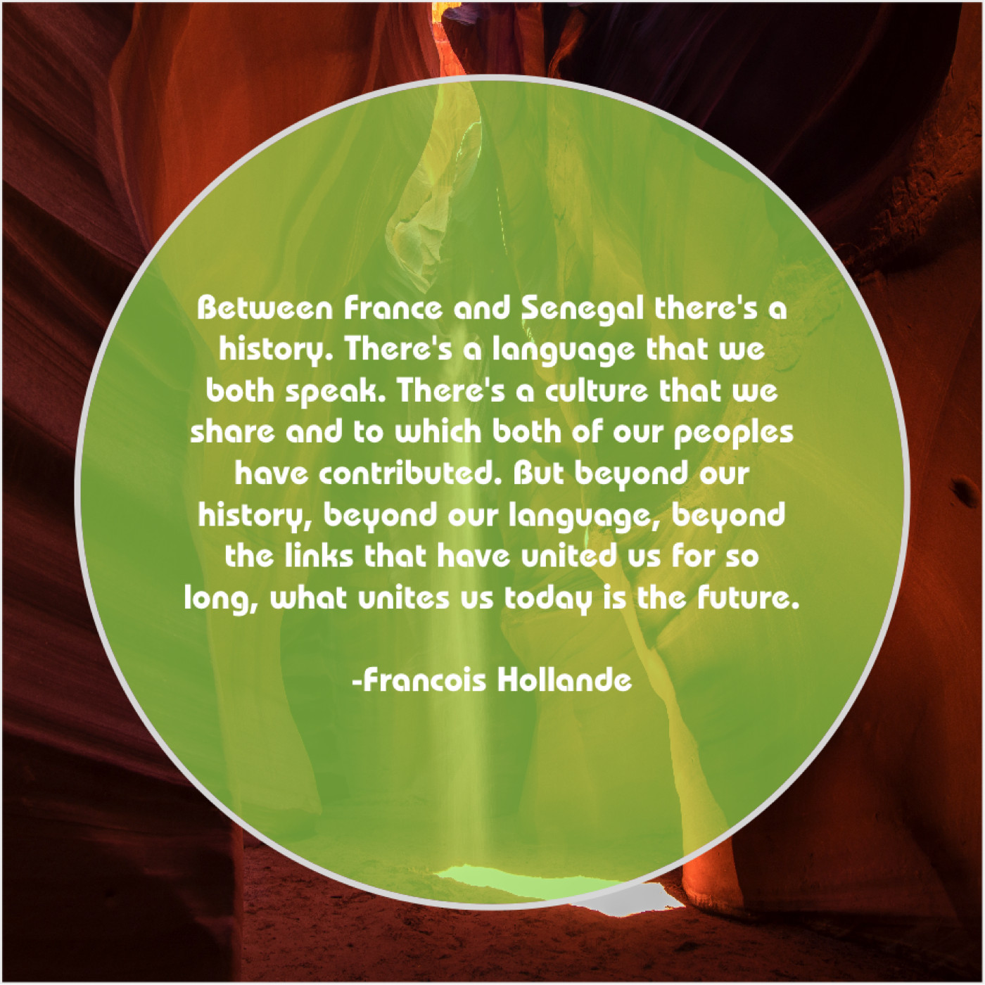 “Between France and Senegal there’s a history. There’s a language that we both speak. There’s a culture that we share and to which both of our peoples have contributed. But beyond our history, beyond our language, beyond the links that have united us for so long, what unites us today is the future.”