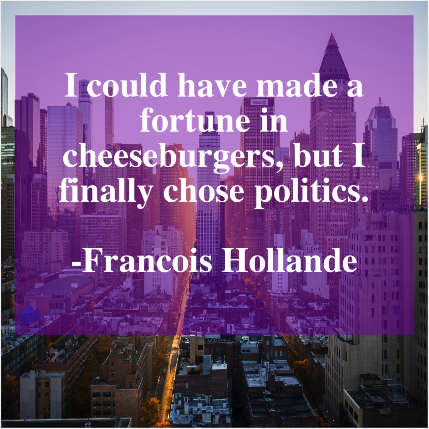 Francois Hollande Francois Hollande – I could have made a… February 2, 2019 admin “I could have made a fortune in cheeseburgers, but I finally chose politics.”-Francois Hollande