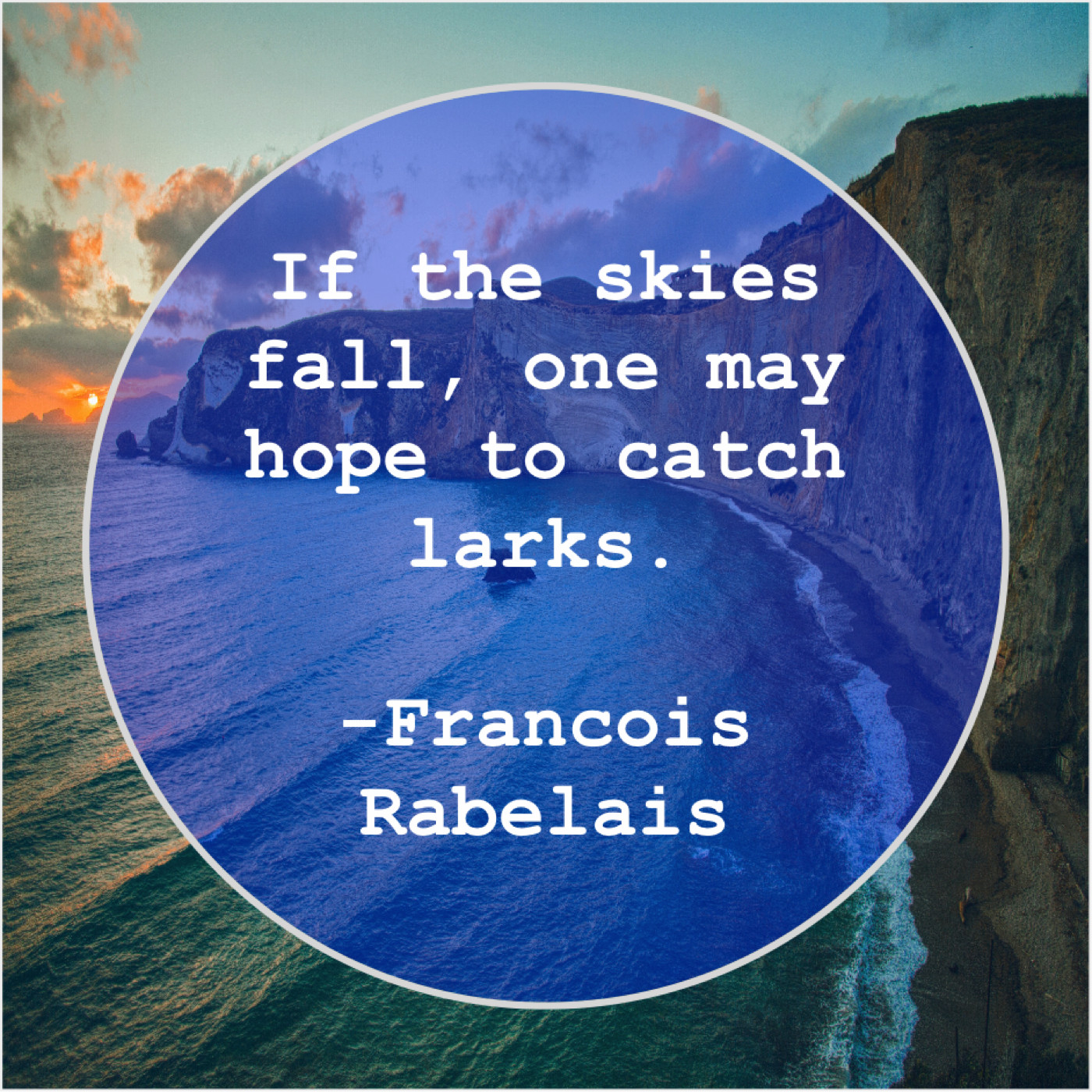 Francois Rabelais Francois Rabelais – If the skies fall, one… September 4, 2019 admin “If the skies fall, one may hope to catch larks.”-Francois Rabelais