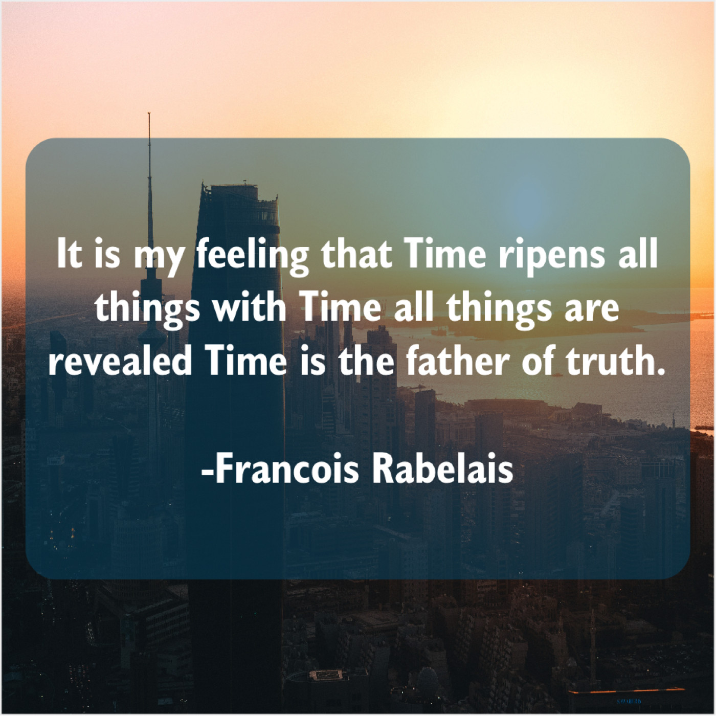 Francois Rabelais Francois Rabelais – It is my feeling that… June 11, 2019 admin “It is my feeling that Time ripens all things with Time all things are revealed Time is the father of truth.”-Francois Rabelais