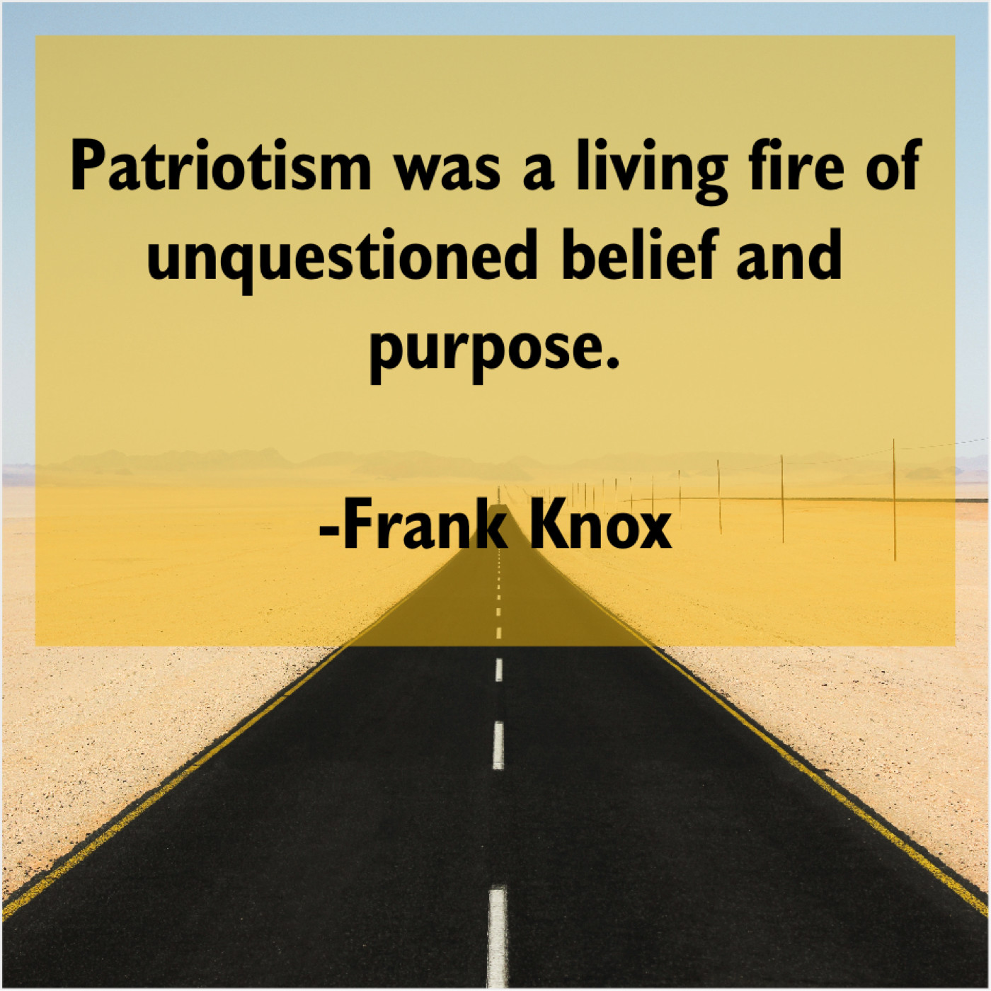 Frank Knox Frank Knox – Patriotism was a living fire… March 5, 2019 admin “Patriotism was a living fire of unquestioned belief and purpose.”-Frank Knox