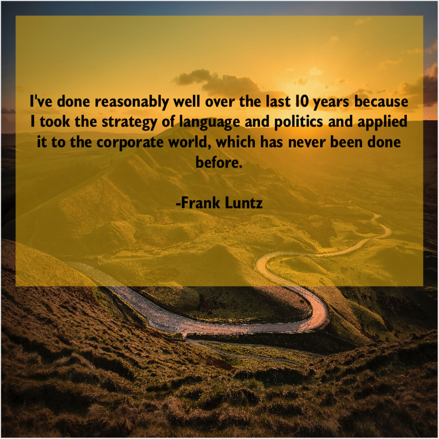 Frank Luntz Frank Luntz – I’ve done reasonably well over… June 12, 2019 admin “I’ve done reasonably well over the last 10 years because I took the strategy of language and politics and applied it to the corporate world, which has never been done before.”-Frank Luntz