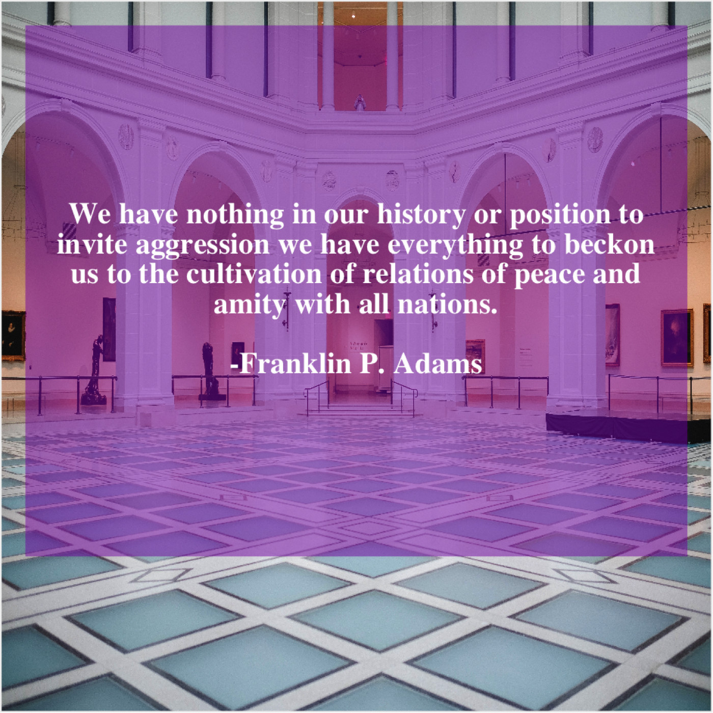 “We have nothing in our history or position to invite aggression we have everything to beckon us to the cultivation of relations of peace and amity with all nations.”