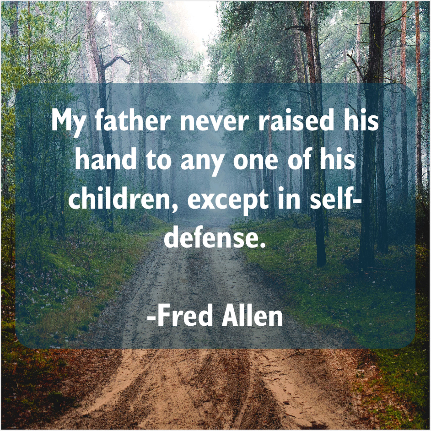 Fred Allen Fred Allen – My father never raised his… August 7, 2019 admin “My father never raised his hand to any one of his children, except in self-defense.”-Fred Allen