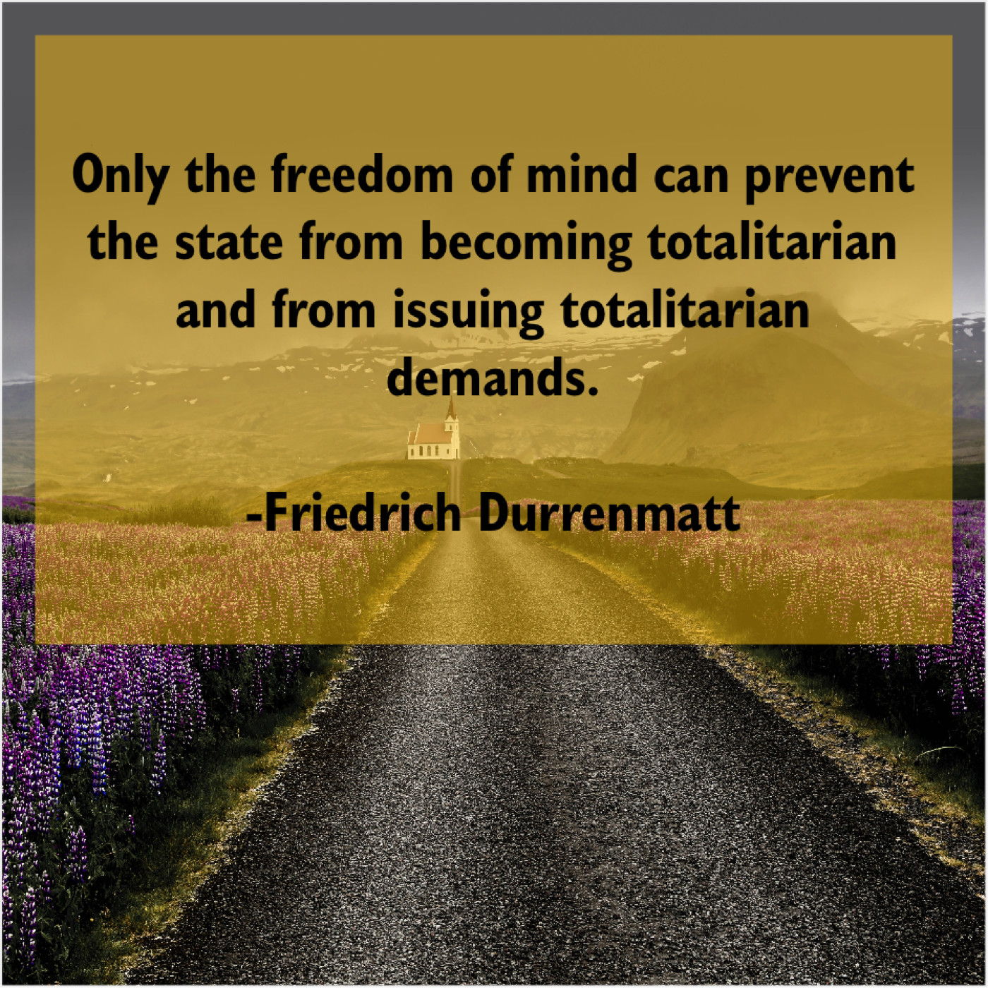 Friedrich Durrenmatt Friedrich Durrenmatt – Only the freedom of mind… March 25, 2019 admin “Only the freedom of mind can prevent the state from becoming totalitarian and from issuing totalitarian demands.”-Friedrich Durrenmatt