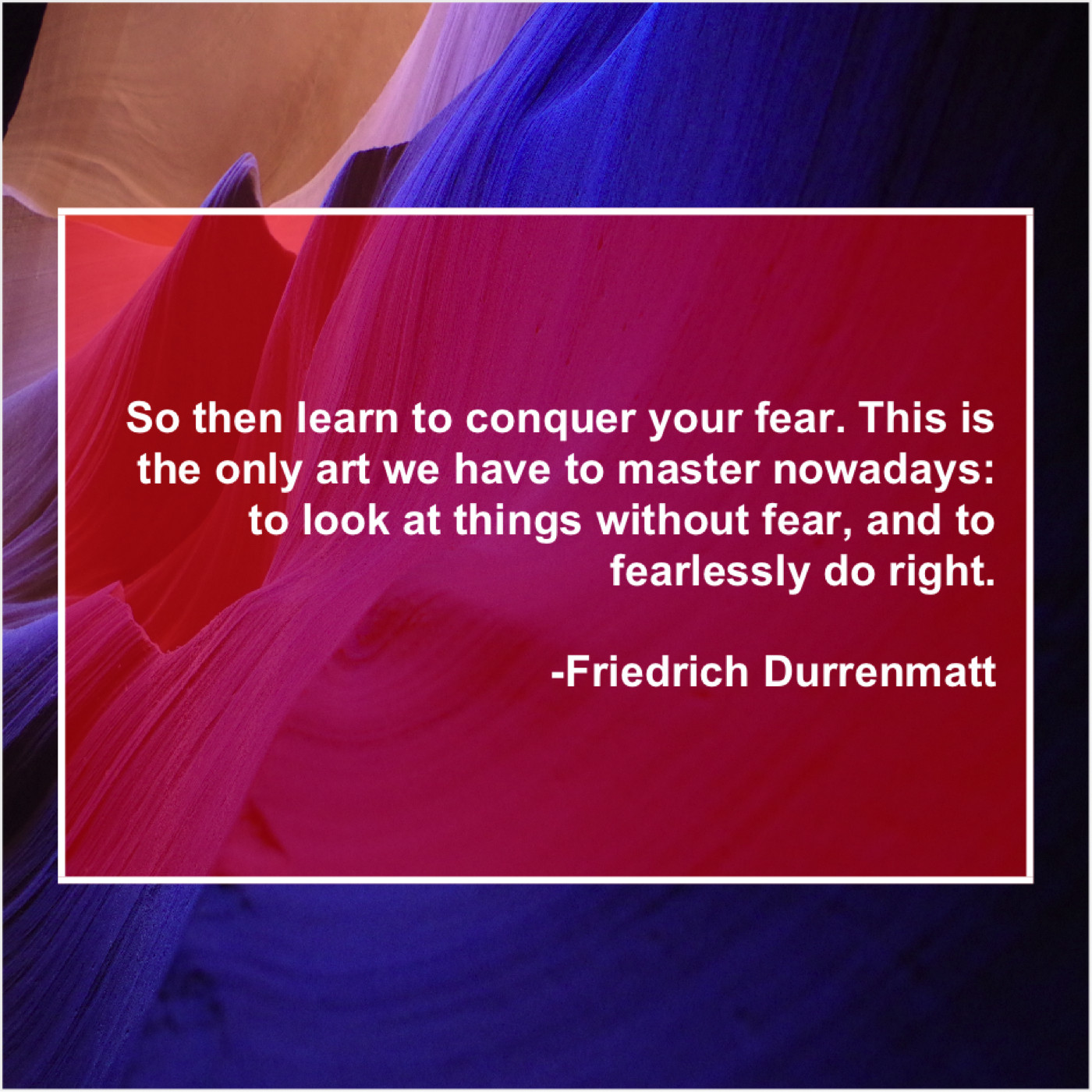Friedrich Durrenmatt Friedrich Durrenmatt – So then learn to conquer… April 15, 2019 admin “So then learn to conquer your fear. This is the only art we have to master nowadays: to look at things without fear, and to fearlessly do right.”-Friedrich Durrenmatt