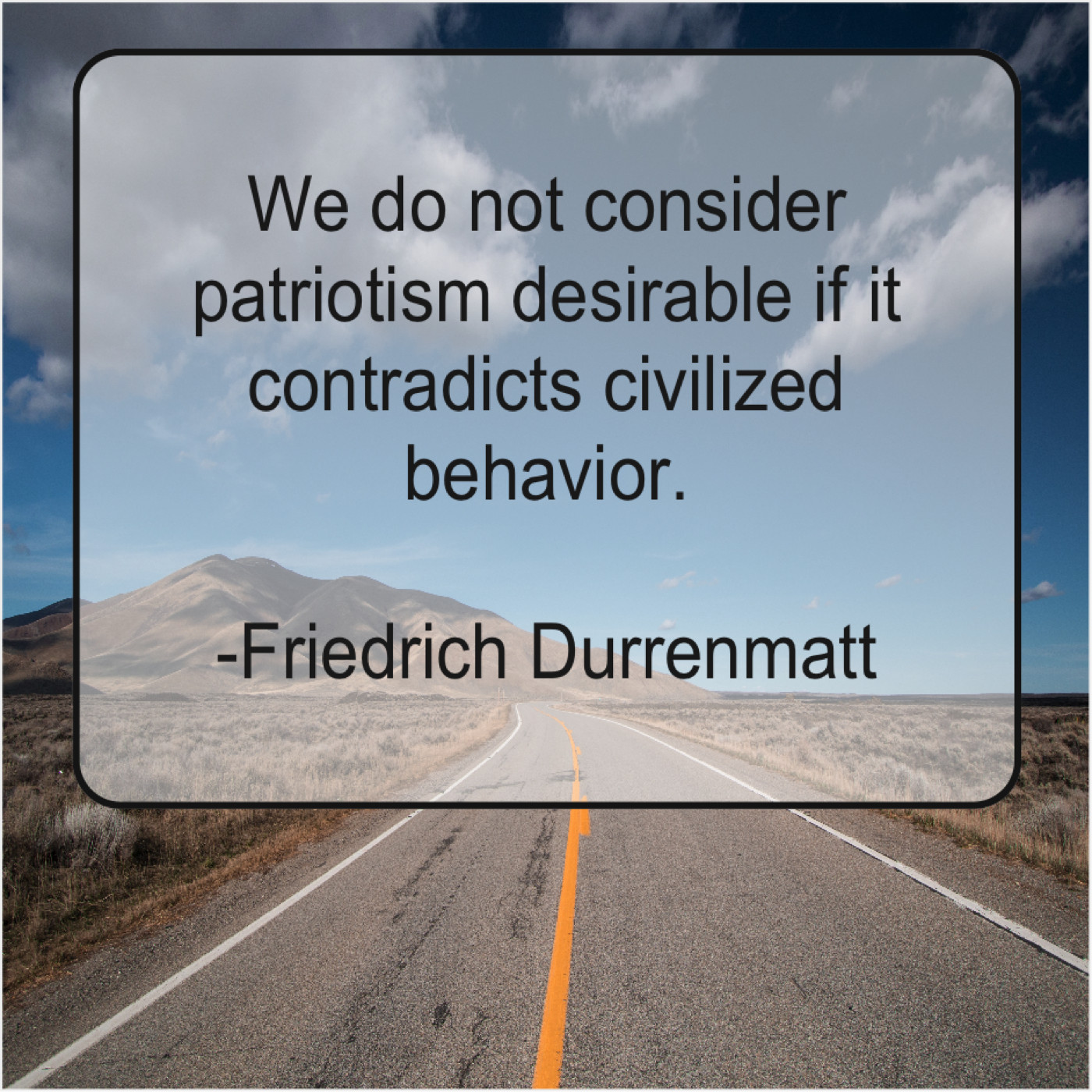 Friedrich Durrenmatt Friedrich Durrenmatt – We do not consider patriotism… April 18, 2019 admin “We do not consider patriotism desirable if it contradicts civilized behavior.”-Friedrich Durrenmatt