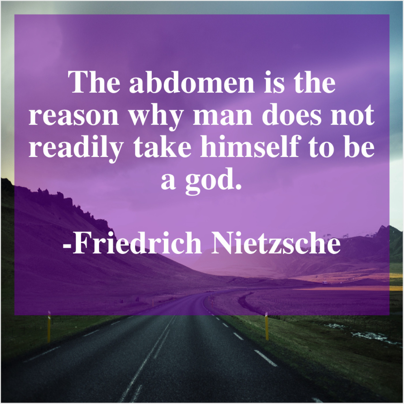 Friedrich Nietzsche Friedrich Nietzsche – The abdomen is the reason… September 17, 2019 admin “The abdomen is the reason why man does not readily take himself to be a god.”-Friedrich Nietzsche