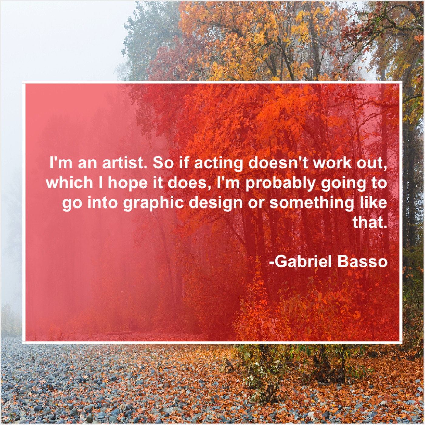 Gabriel Basso Gabriel Basso – I’m an artist. So if… October 16, 2019 admin “I’m an artist. So if acting doesn’t work out, which I hope it does, I’m probably going to go into graphic design or something like that.”-Gabriel Basso