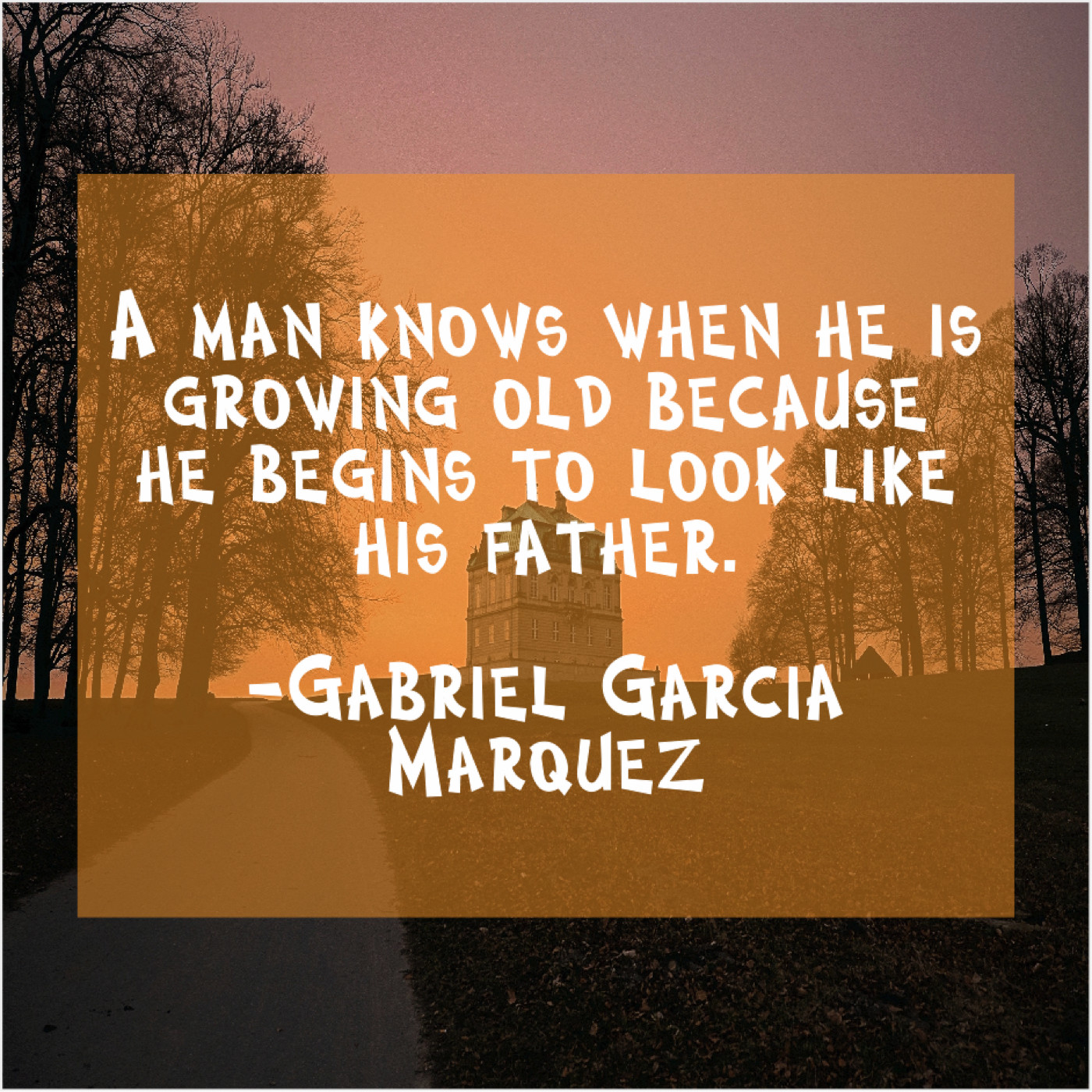 Gabriel Garcia Marquez Gabriel Garcia Marquez – A man knows when he… September 7, 2019 admin “A man knows when he is growing old because he begins to look like his father.”-Gabriel Garcia Marquez