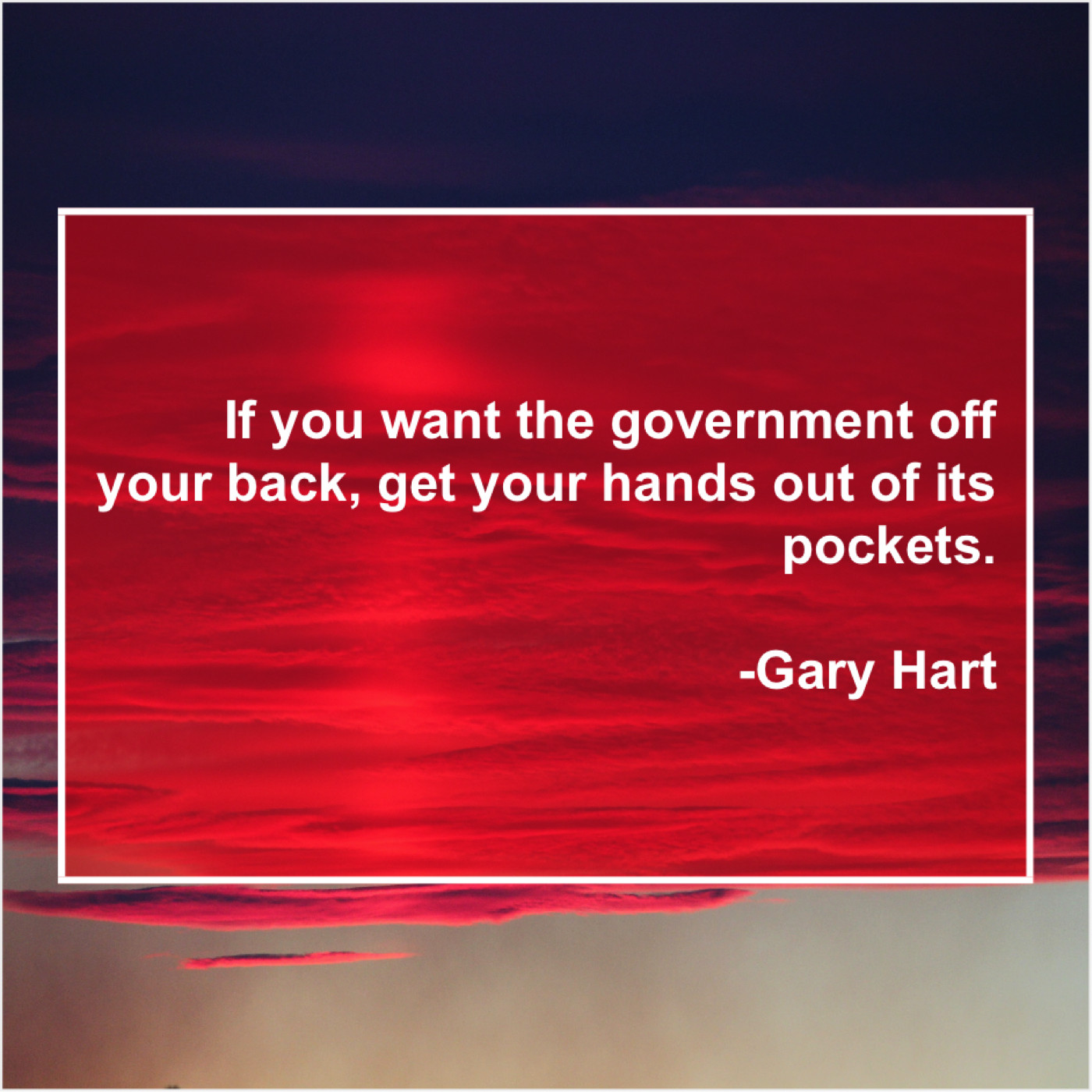 Gary Hart Gary Hart – If you want the government… April 21, 2019 admin “If you want the government off your back, get your hands out of its pockets.”-Gary Hart