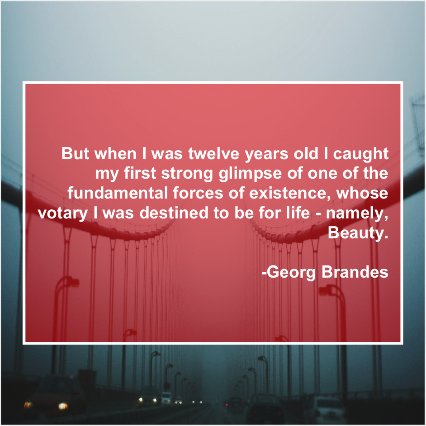 Georg Brandes Georg Brandes – But when I was twelve… January 4, 2019 admin “But when I was twelve years old I caught my first strong glimpse of one of the fundamental forces of existence, whose votary I was destined to be for life – namely, Beauty.”-Georg Brandes
