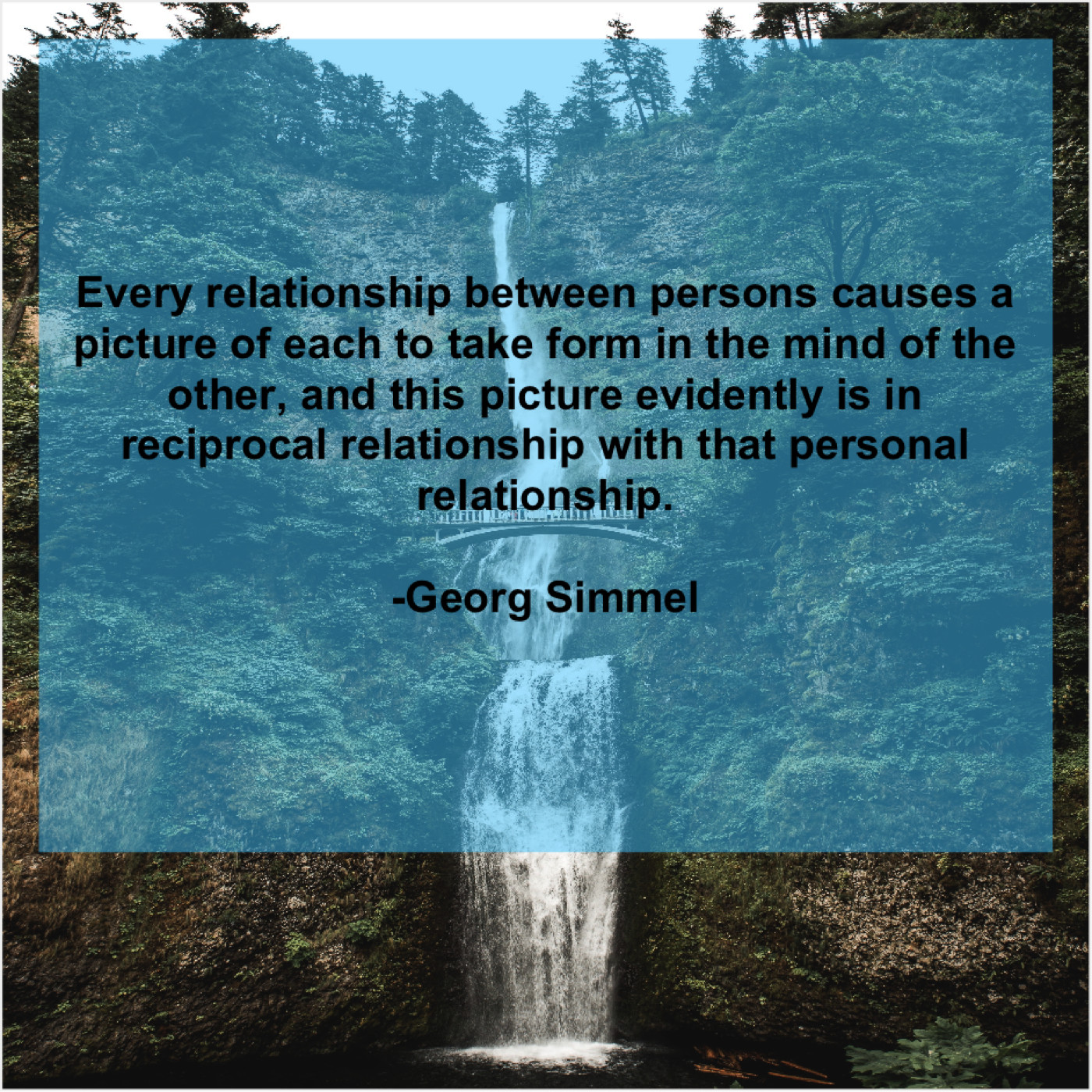Georg Simmel Georg Simmel – Every relationship between persons causes… August 24, 2019 admin “Every relationship between persons causes a picture of each to take form in the mind of the other, and this picture evidently is in reciprocal relationship with that personal relationship.”-Georg Simmel