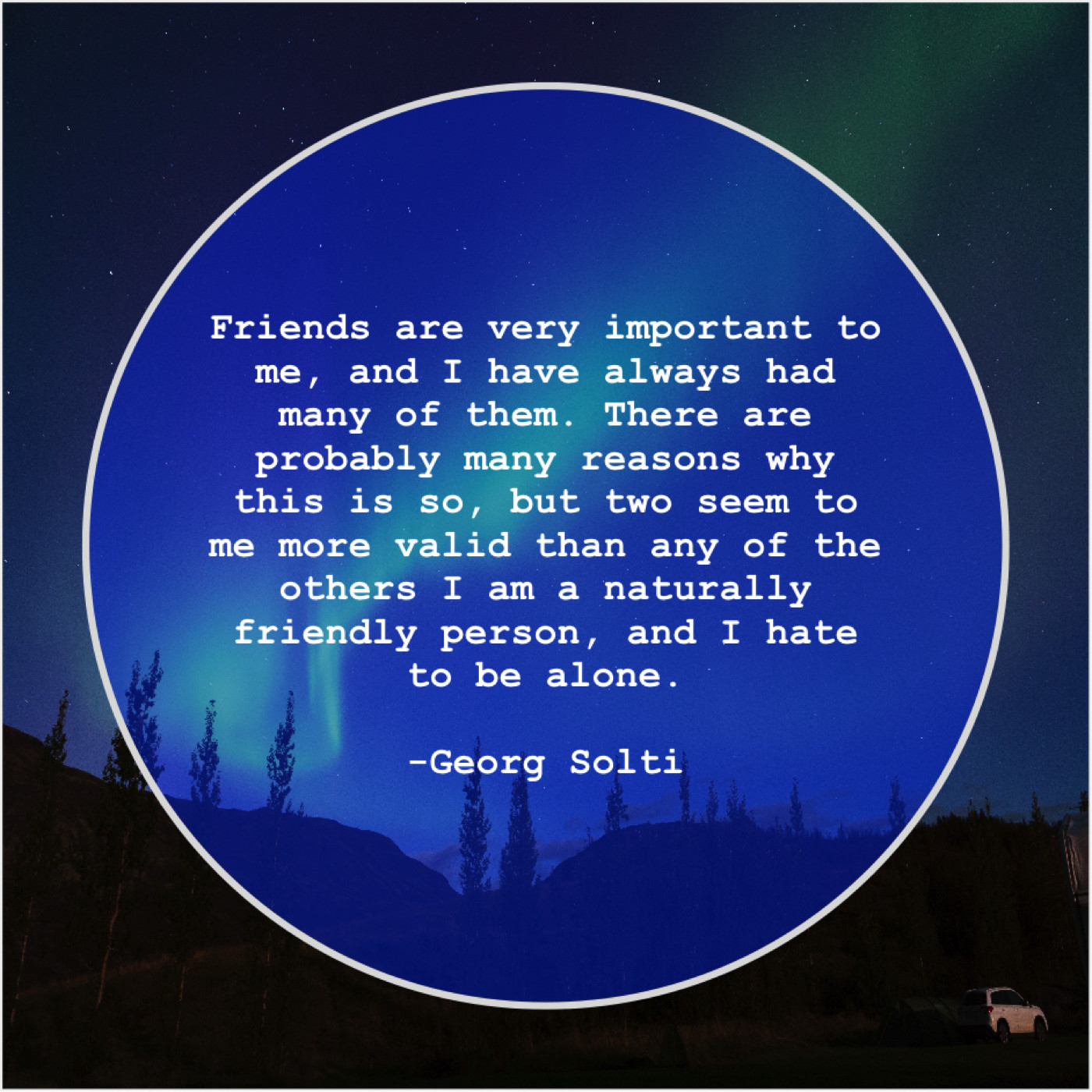 Georg Solti Georg Solti – Friends are very important to… March 3, 2019 admin “Friends are very important to me, and I have always had many of them. There are probably many reasons why this is so, but two seem to me more valid than any of the others I am a naturally friendly person, and I hate to be alone.”-Georg Solti