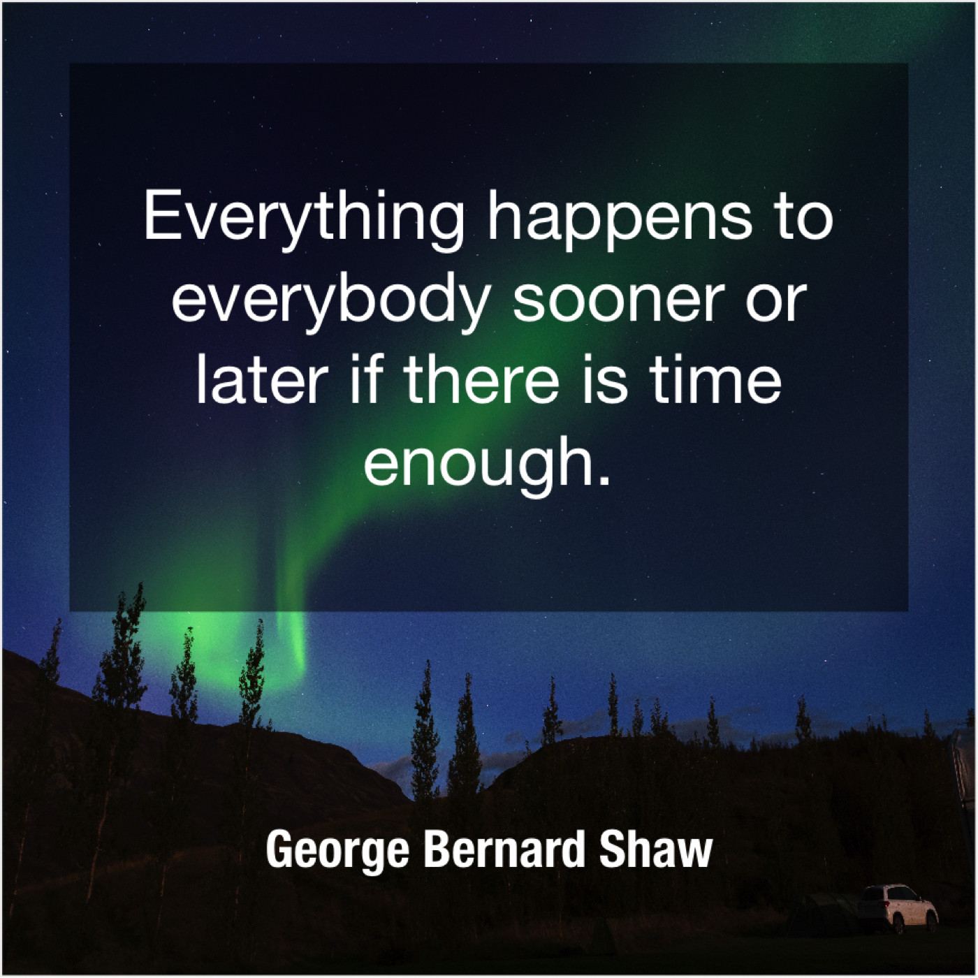 George Bernard Shaw George Bernard Shaw – Everything happens to everybody sooner… October 15, 2019 admin “Everything happens to everybody sooner or later if there is time enough.”-George Bernard Shaw