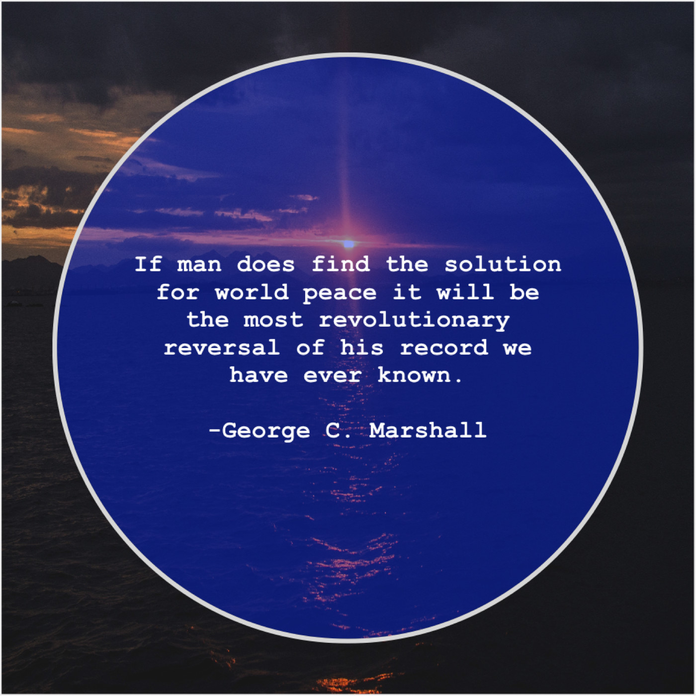 George C. Marshall George C. Marshall – If man does find the… December 4, 2018 admin “If man does find the solution for world peace it will be the most revolutionary reversal of his record we have ever known.”-George C. Marshall