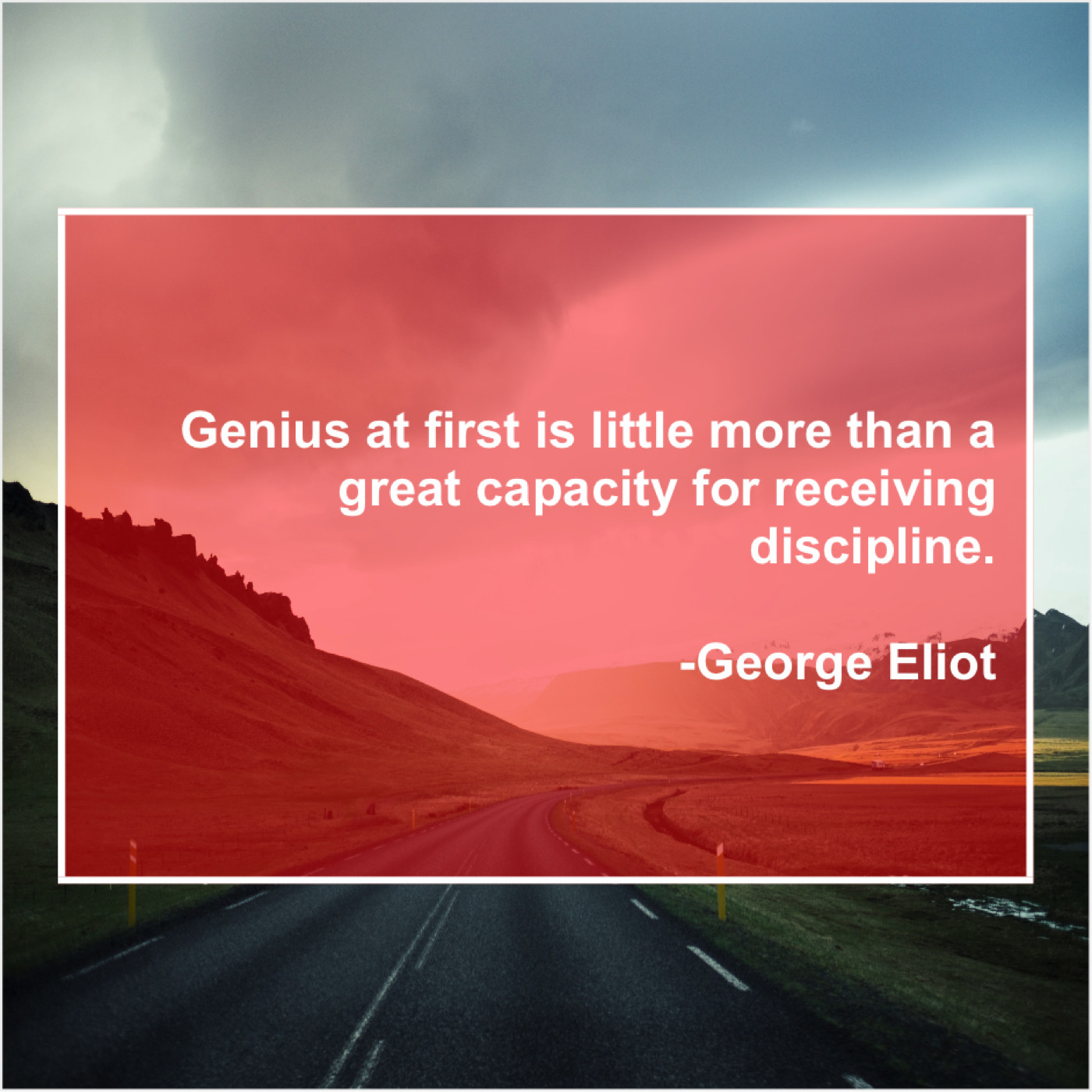George Eliot George Eliot – Genius at first is little… August 11, 2019 admin “Genius at first is little more than a great capacity for receiving discipline.”-George Eliot