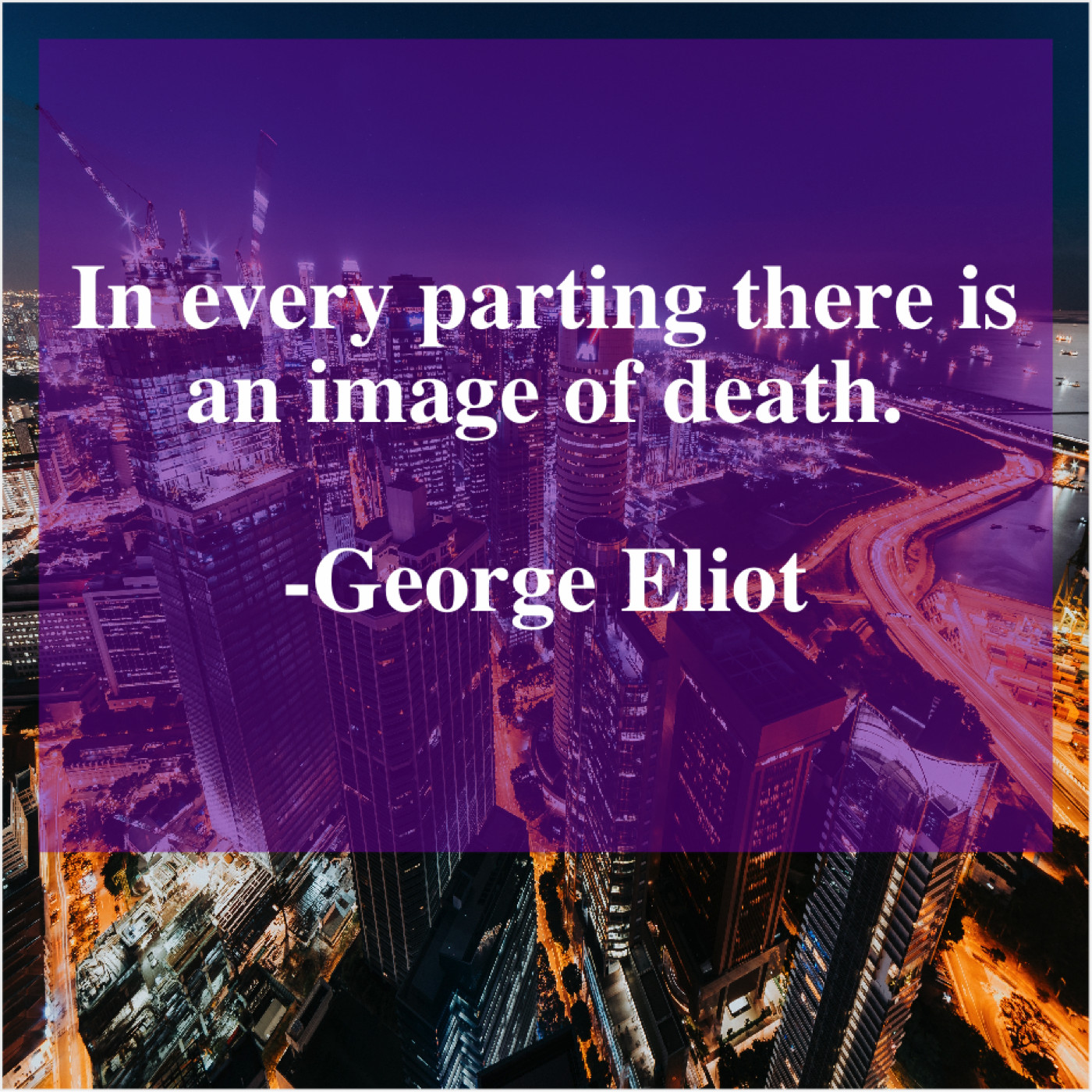 George Eliot George Eliot – In every parting there is… September 14, 2019 admin “In every parting there is an image of death.”-George Eliot