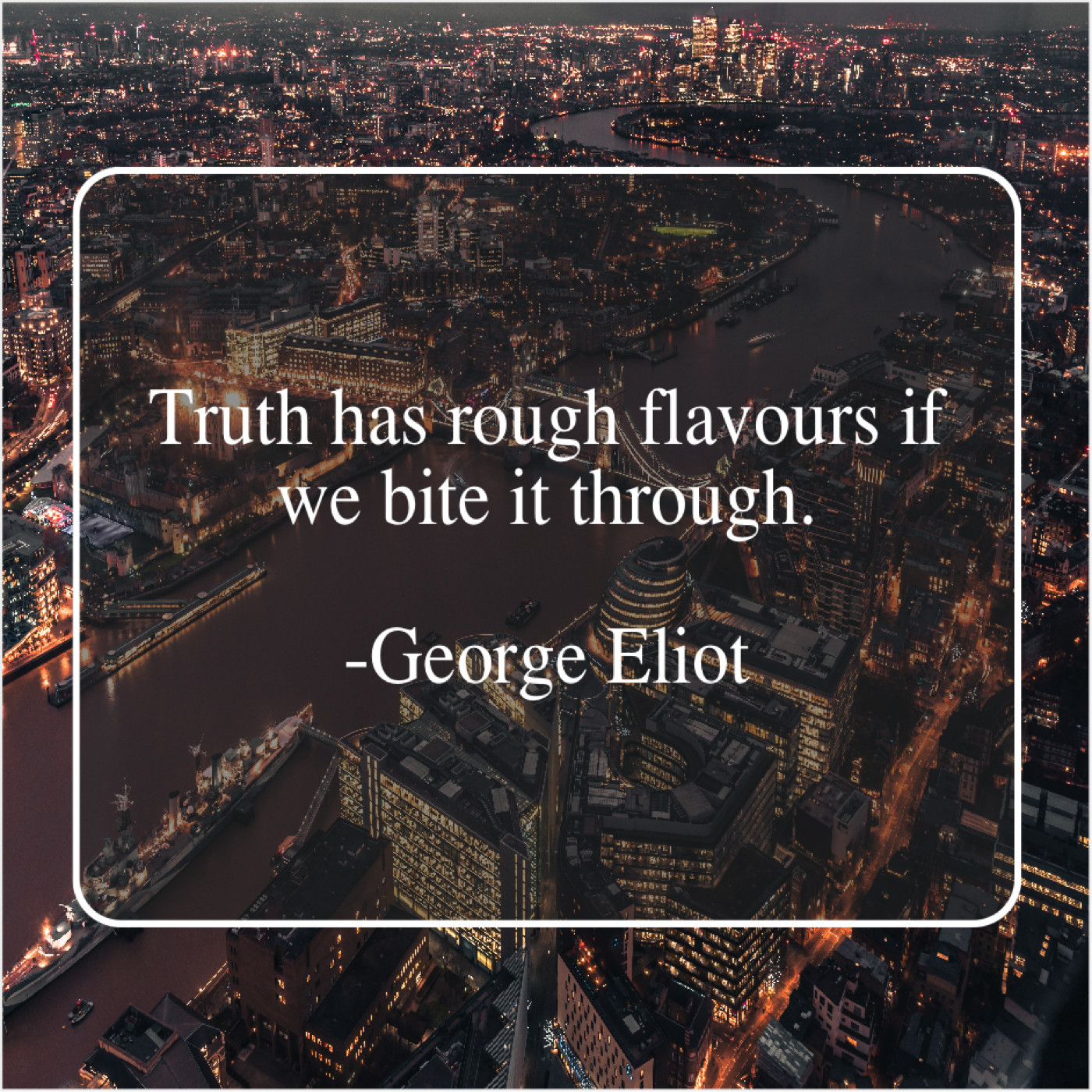 George Eliot George Eliot – Truth has rough flavours if… April 30, 2019 admin “Truth has rough flavours if we bite it through.”-George Eliot