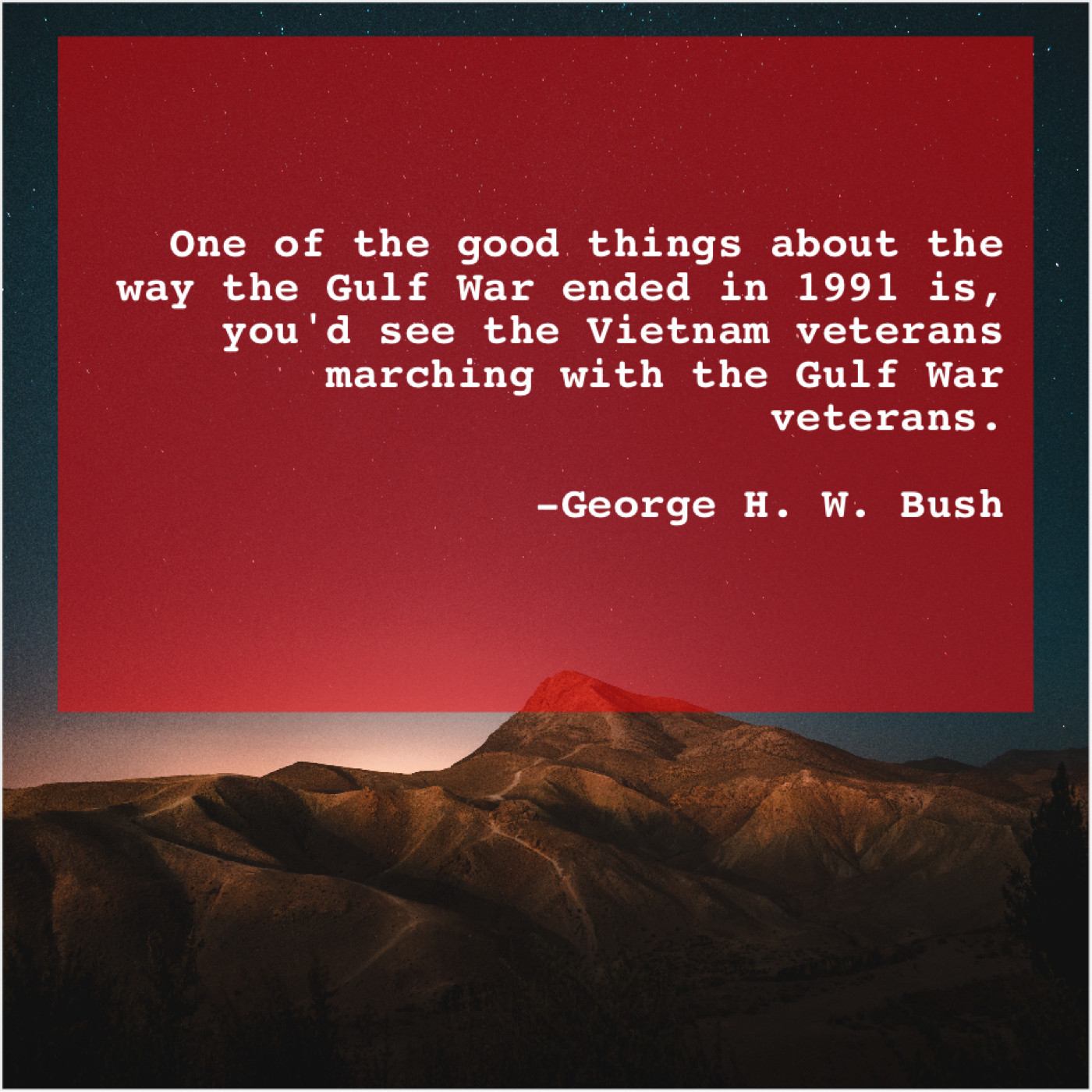“One of the good things about the way the Gulf War ended in 1991 is, you’d see the Vietnam veterans marching with the Gulf War veterans.”